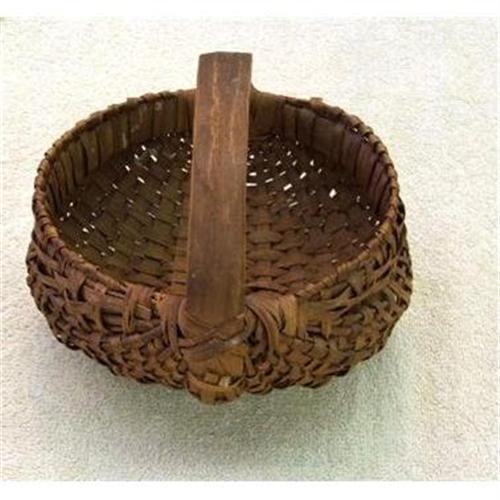This is a small antique buttocks or melon basket . It is about 5" to the top of the handle, about 7" long and 6 1/2" deep. On one side where the handle meets the basket there are some pieces missing (see Pictures). Otherwise it is in excellent condition. The handle appears to be one piece and goes all the way around to the bottom. I am not an expert on these old baskets as I rarely ever get them. Please feel free to ask me questions and I will do the best I can to answer you.