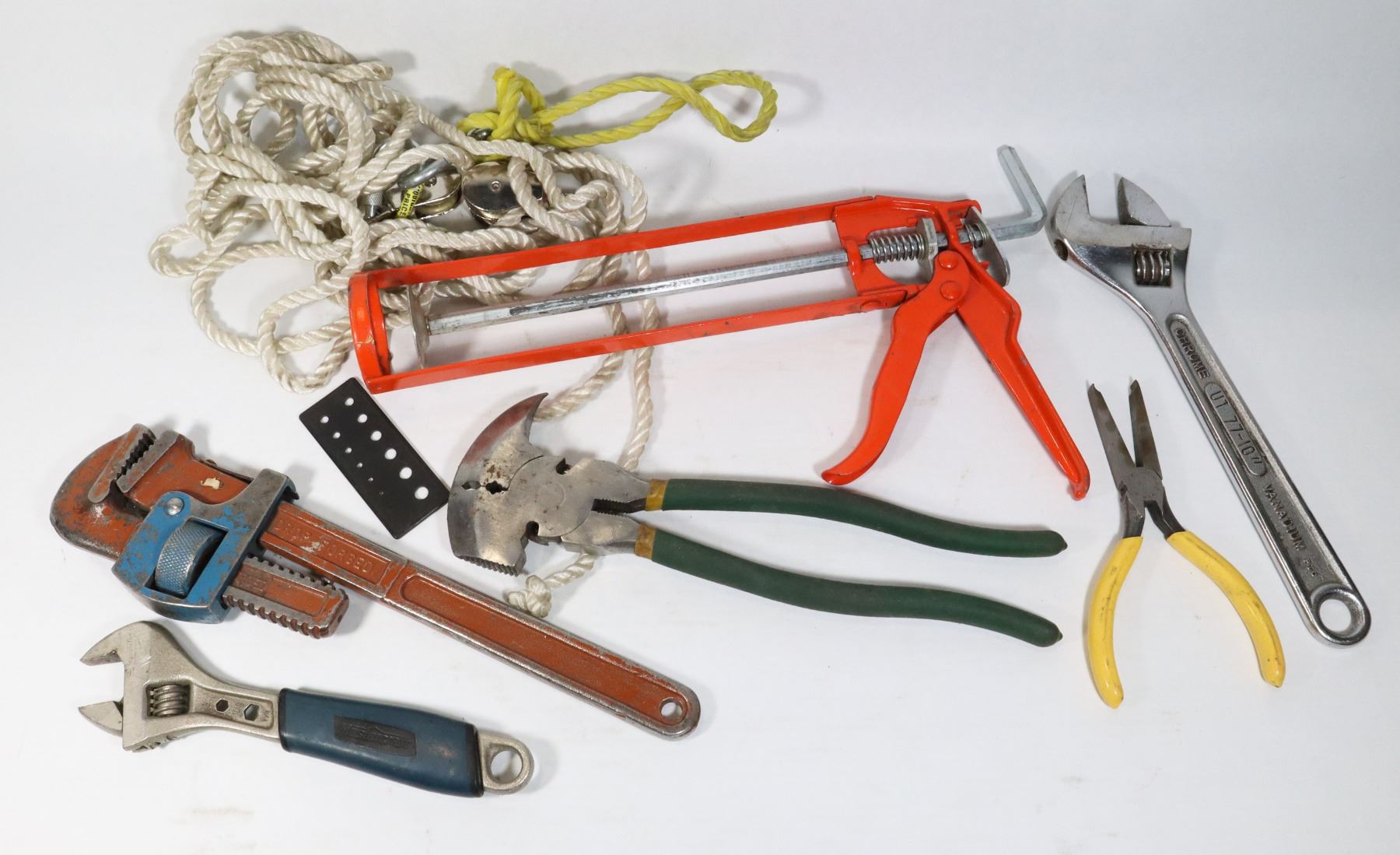 SMALL FLAT OF HAND TOOLS, CRECENT WRENCH,