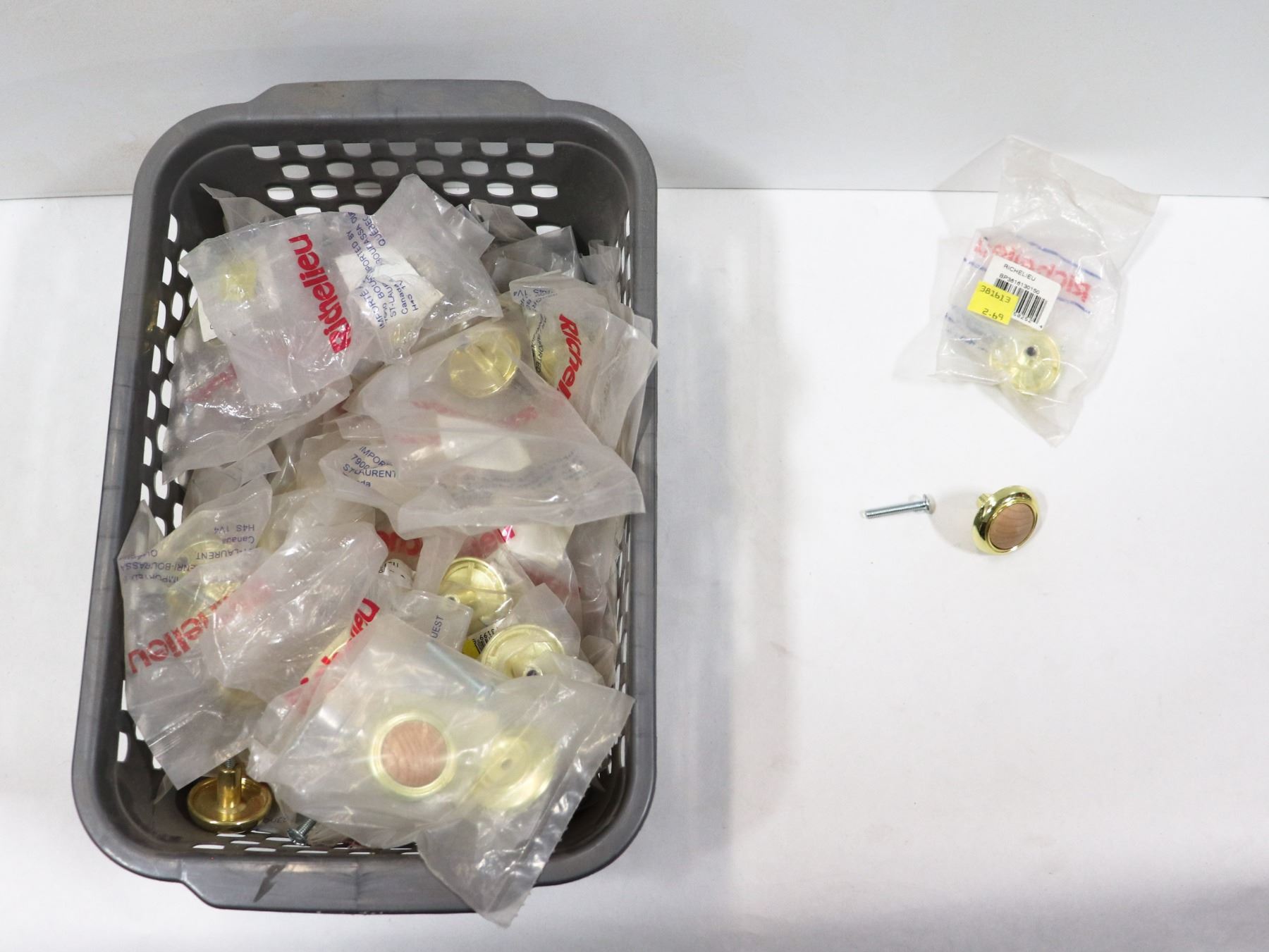 SMALL FLAT OF MULTIPLE UNFINISHED OAK KNOBS