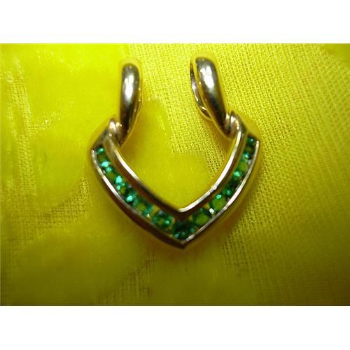 THIS IS A CUTE HEART PENDANT DECORATED WITH SMALL ROUND EMERALDS. THE HEART IS NOT CLOSED AND THE TOP BUILDS INTO TWO HOOPS READY FOR A CAIN.