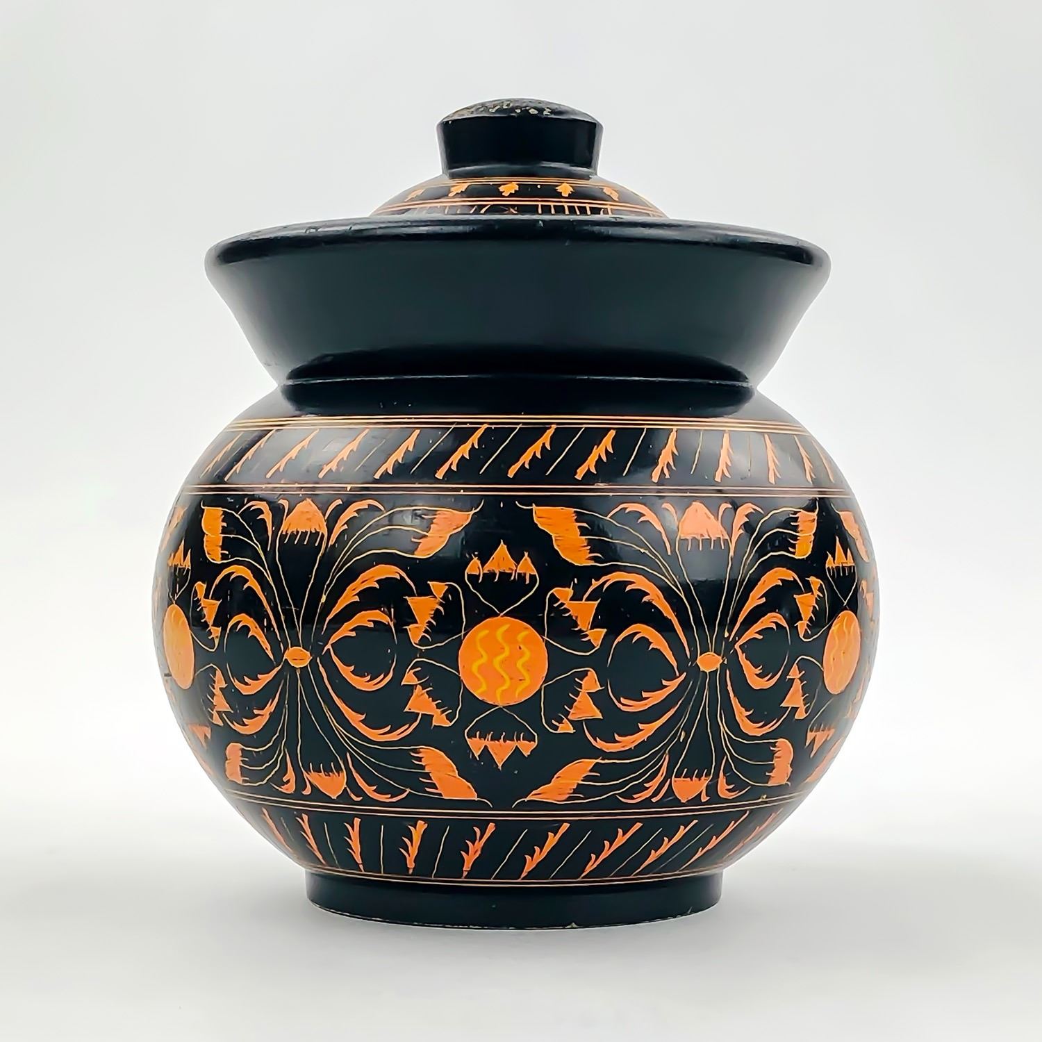 #9377 - UNSIGNED - AGE AND MAKER UNKNOWN, DETAILED FOLK ART SYTLE DESIGN, EDGES OF DESIGN ELEMENTS ARE LIGHTLY CARVED INTO THE WOOD, MEASURES 5.25” (13.5 CM) HIGH, 4.5” (11.5 CM) WIDEST DIAMETER, 2” (5 CM) TOP OPENING DIAMETER***ITEM(S) LOCATED IN LETHBRIDGE ALBERTA. ALL ITEMS IN THIS AUCTION QUALIFY FOR OUR FREE TRANSPORT TO EDMONTON SERVICE. WORLDWIDE SHIPPING AVAILABLE