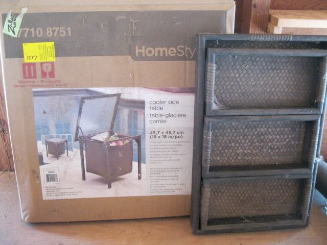 SMALL LIFT TOP COOLER SIDE TABLE & A WOODEN SERVING TRAY SET