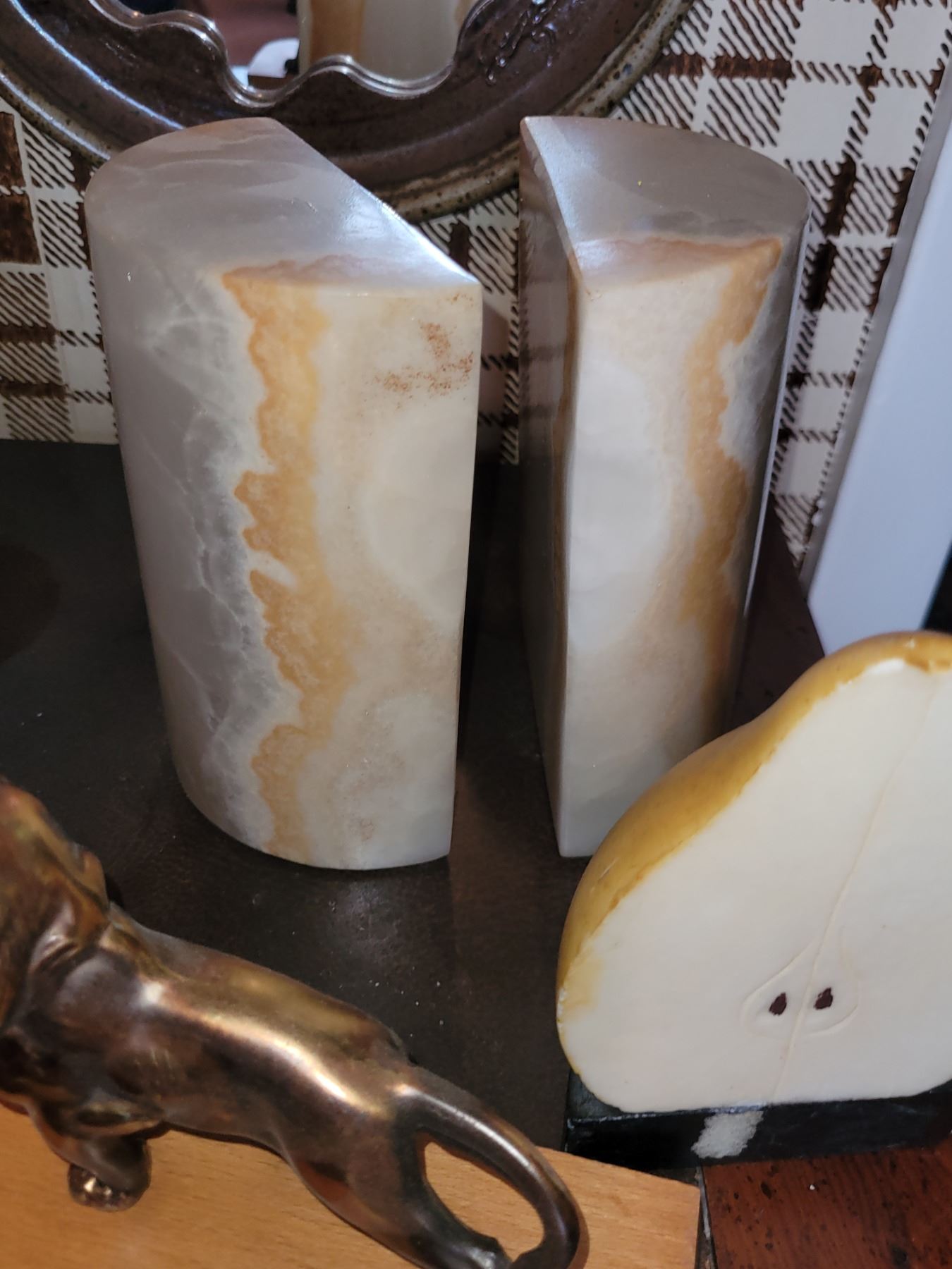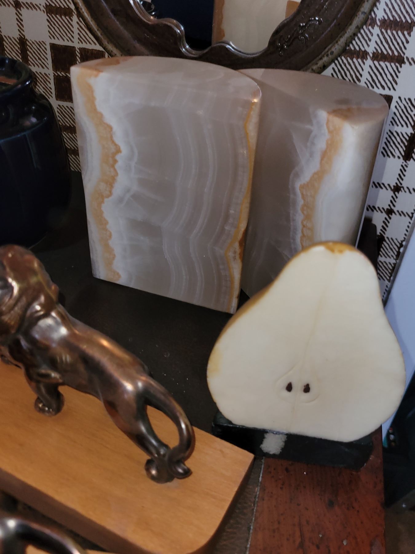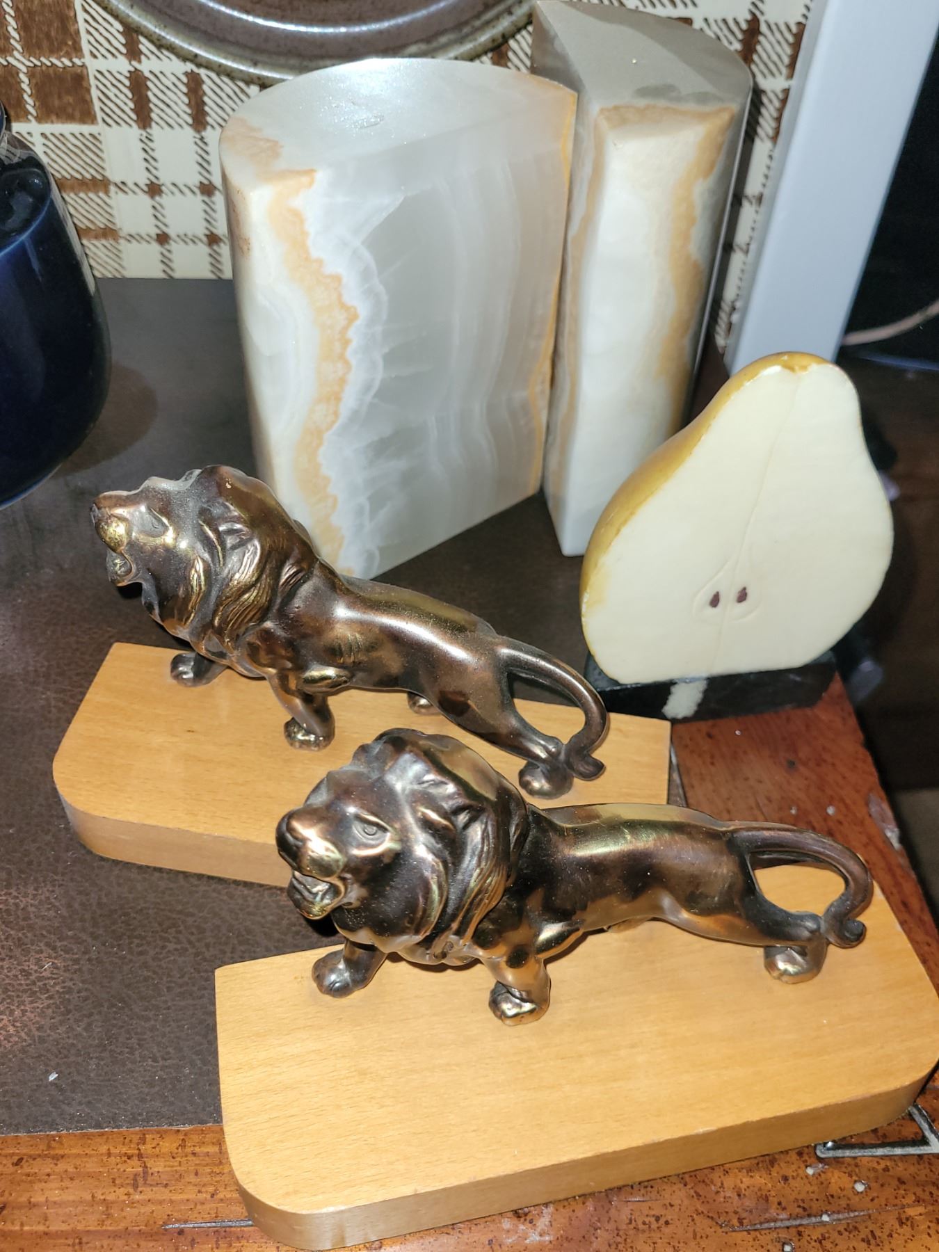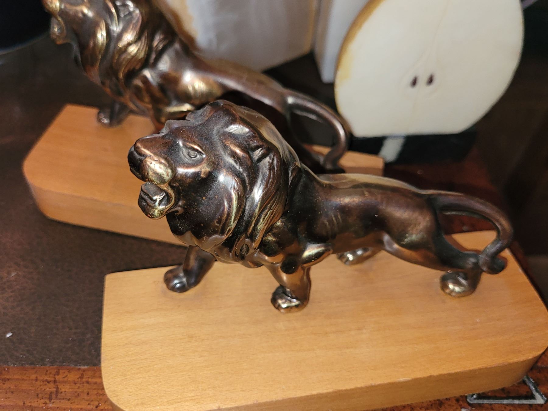LION IS BRASS AND WOOD, STONE IS ONYX. SEE PICTURES
