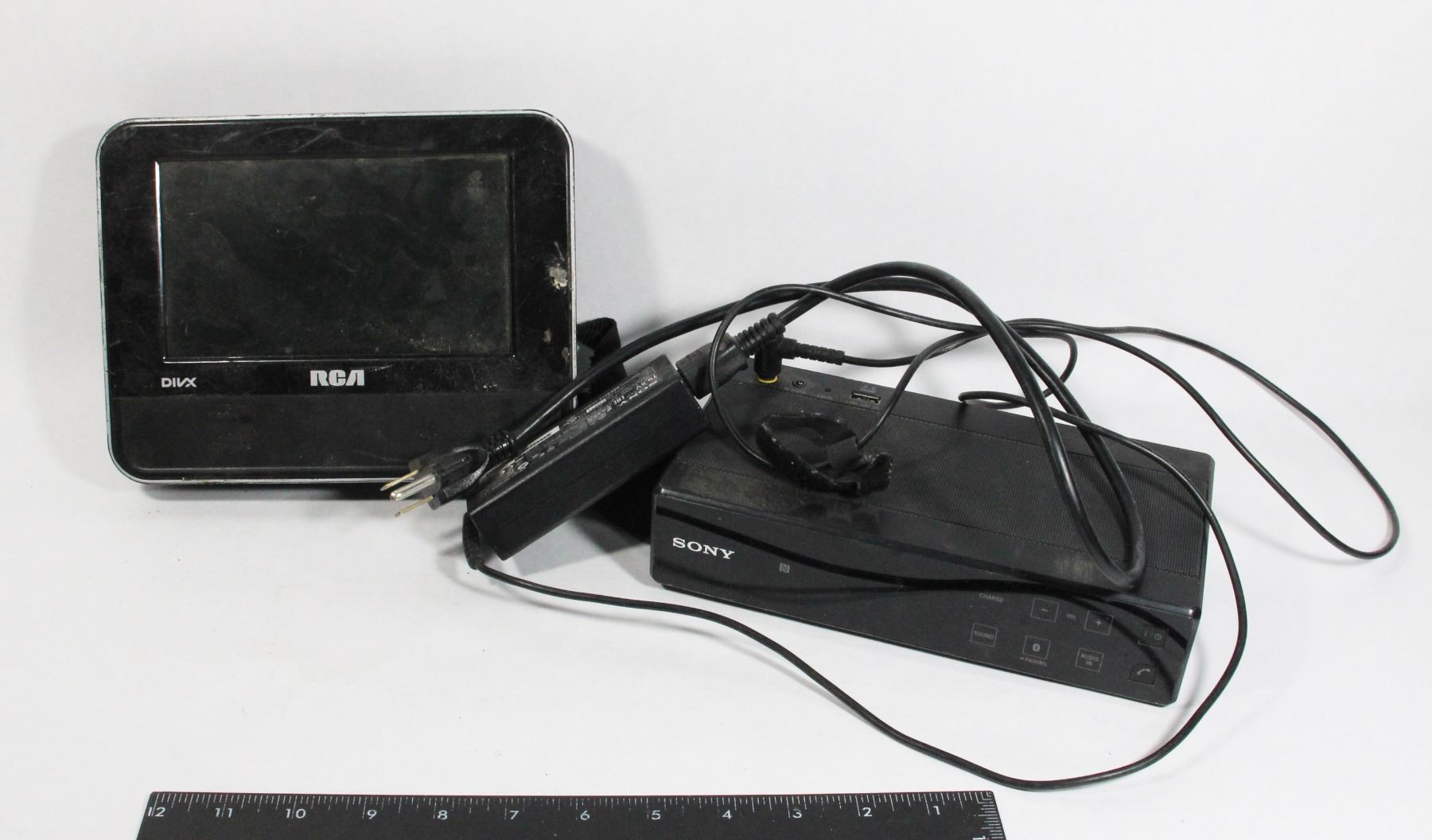 RCA PORTABLE DVD PLAYER, SONY PERSONAL AUDIO BLUETOOTH SYSTEM. NEITHER WORK AND/ OR ARE MISSING PARTS