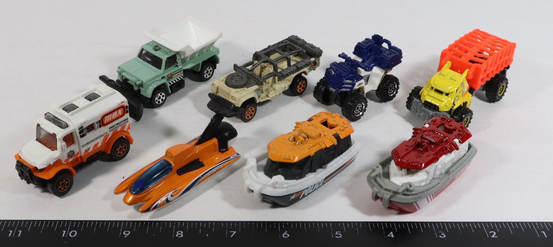 SMALL LOT OF HOTWHEELS BOATS, RESCUE CARS ETC.