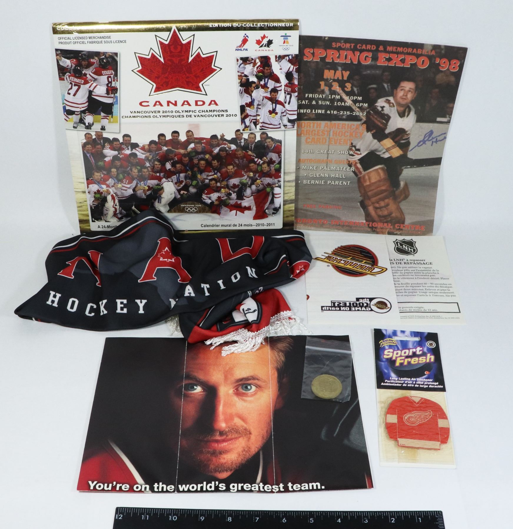 SEALED 2010-2011 OLYMPIC CHAMPIONS 24 MONTH CALENDAR CANUCKS NHL IRON ON HOCKEY TRANSFER LOGO 1995 SPRING EXPO '98 GERRY THOMAS POSTER