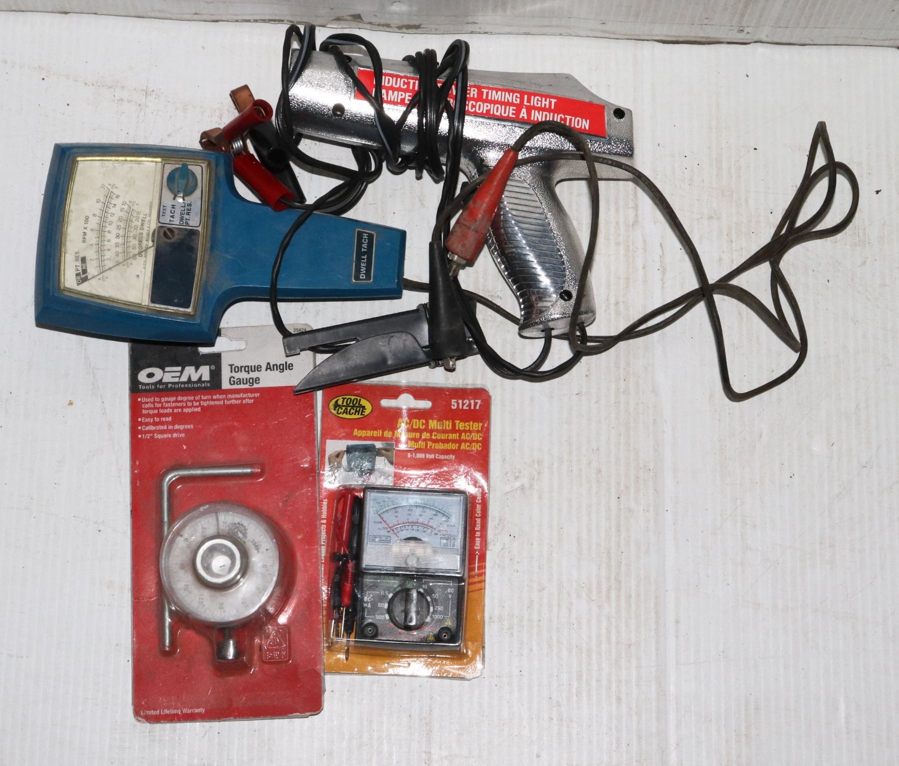 INDUCTIVE POWER TIMING LIGHT DWELL TACH IGNITION TESTER AC/DC MULTI TESTER TORQUE ANGLE GAGE