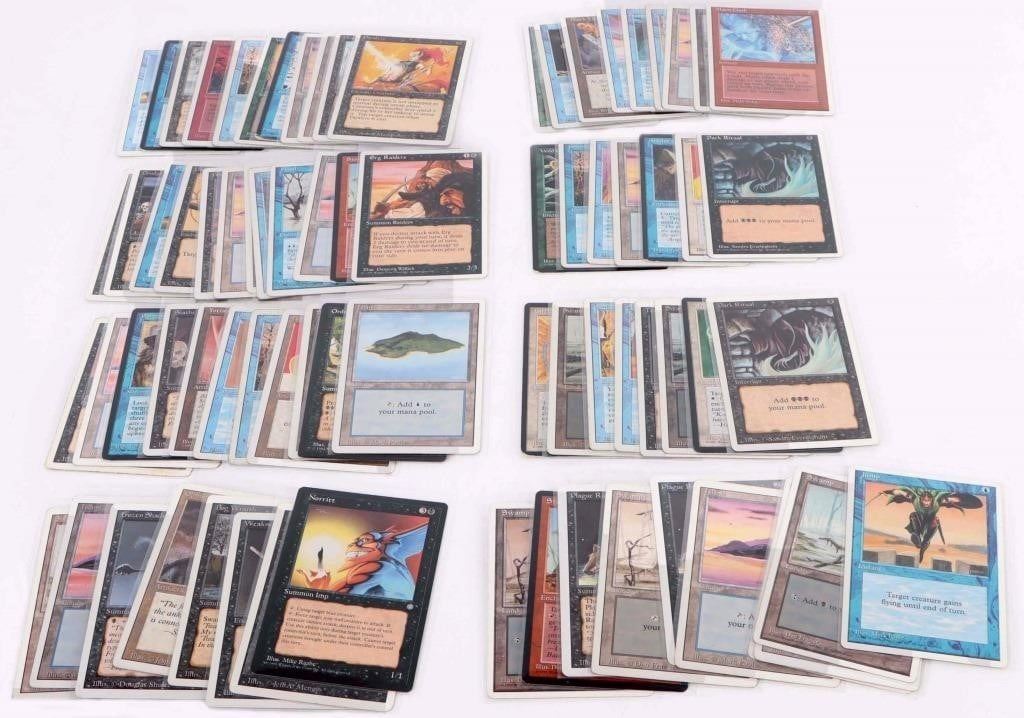 Approximately 78 Magic the Gathering cards from various old sets such as Ice Age, Fallen Empires, and other white order sets featuring iconic cards such as Dark Ritual and Counterspell