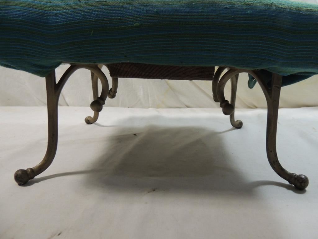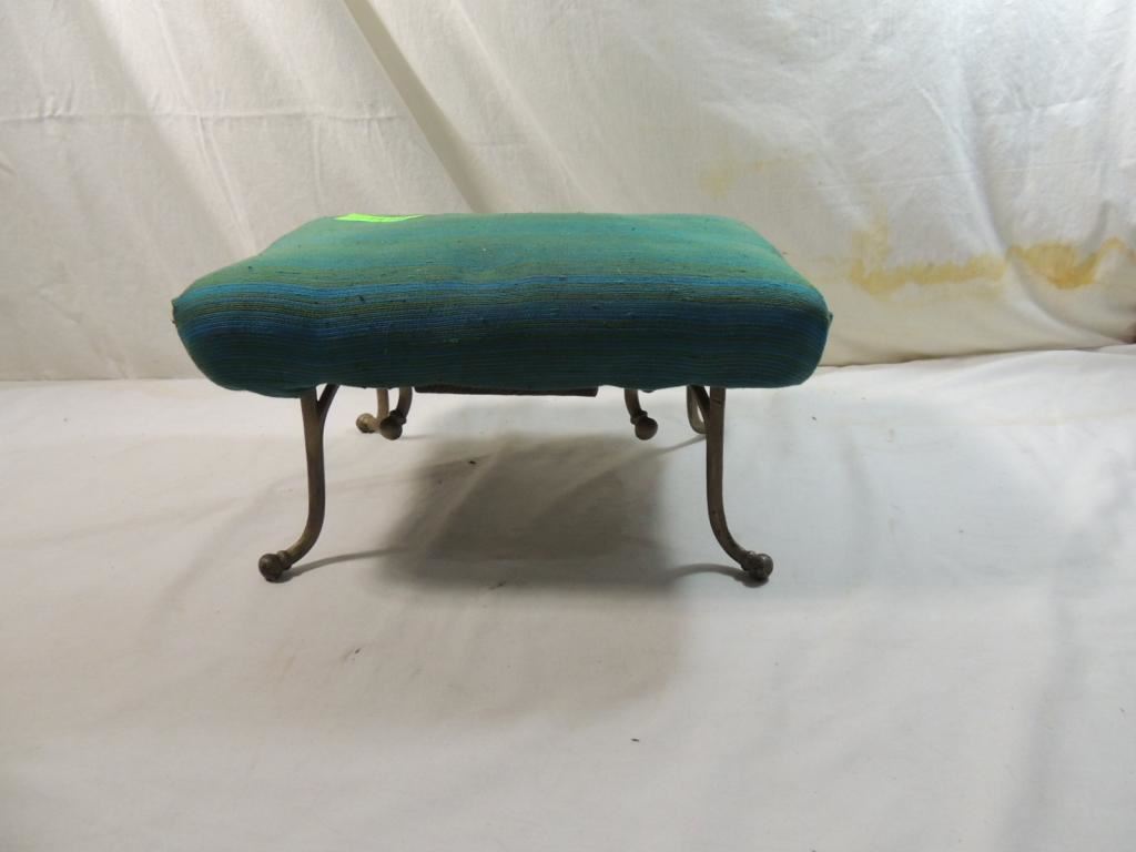 GREEN AND BLUE STRIPPED FOOT STOOL DECORATIVE VINTAGE STOOL AS SHOWN SEE PHOTO FOR MORE DETAILS.