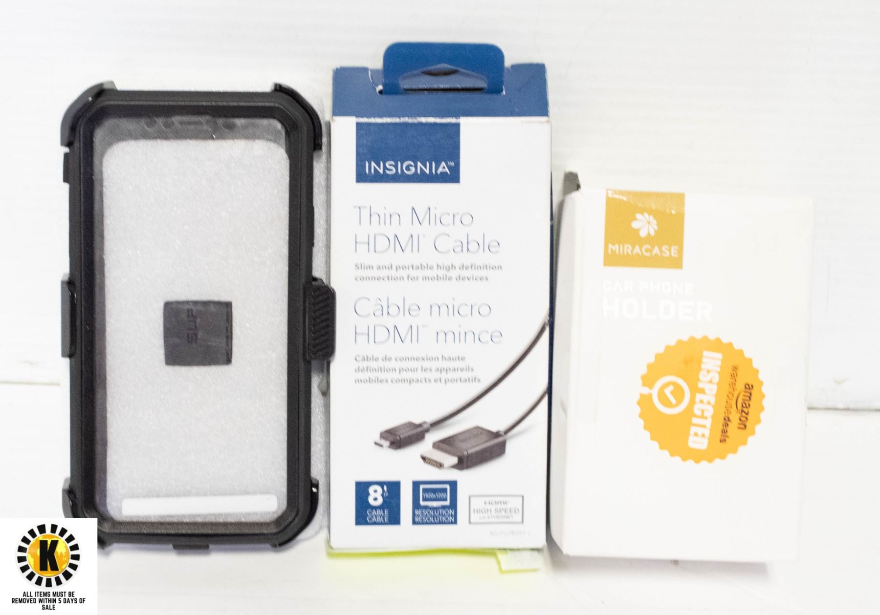 INCLUDES: THING MICRO HDMI CABLE, CAR PHONE HOLDER, & IPHONE 11 PRO CASE.