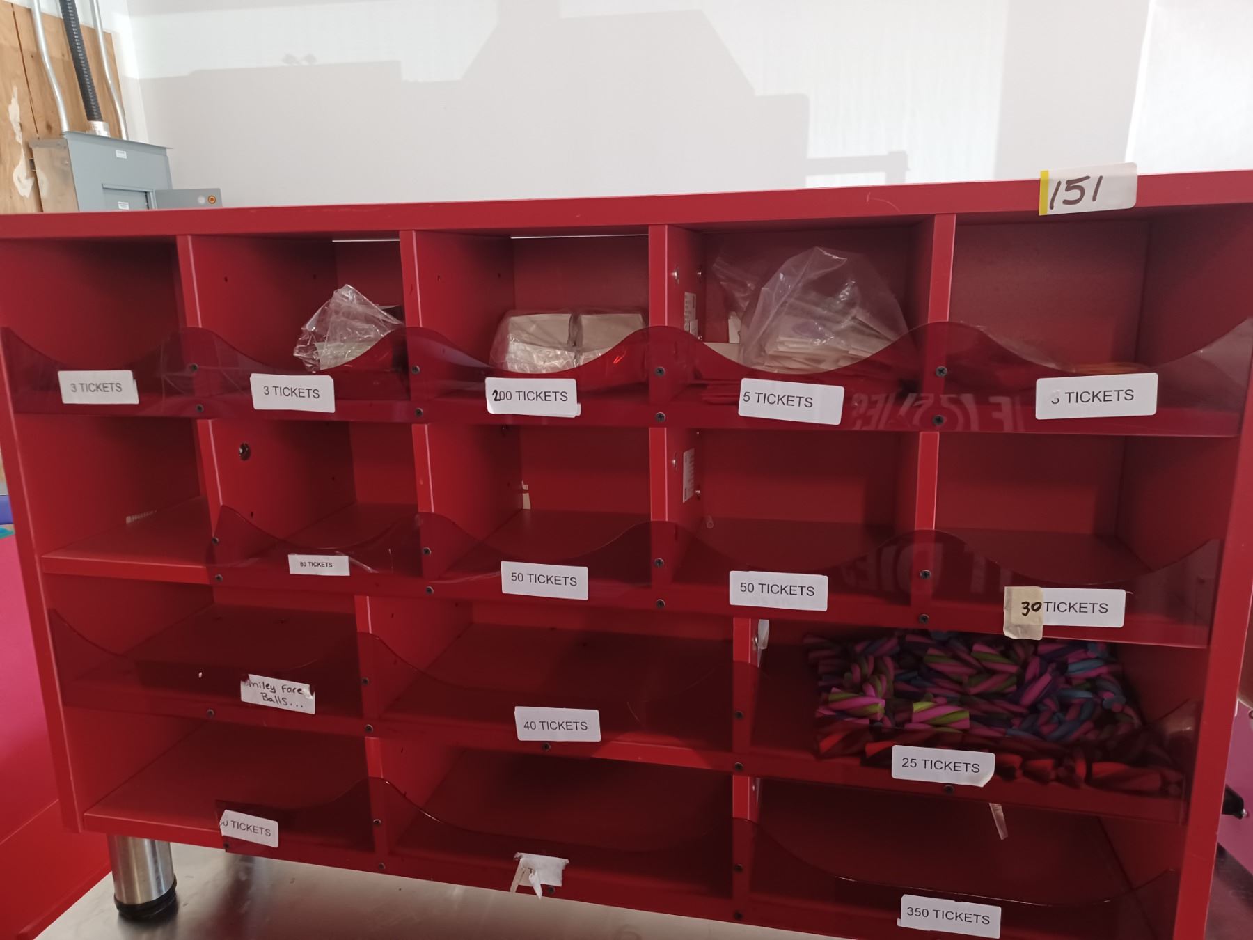 SMALL: RACK OF BINS 9" x 36" x 25" & CONTENTS.