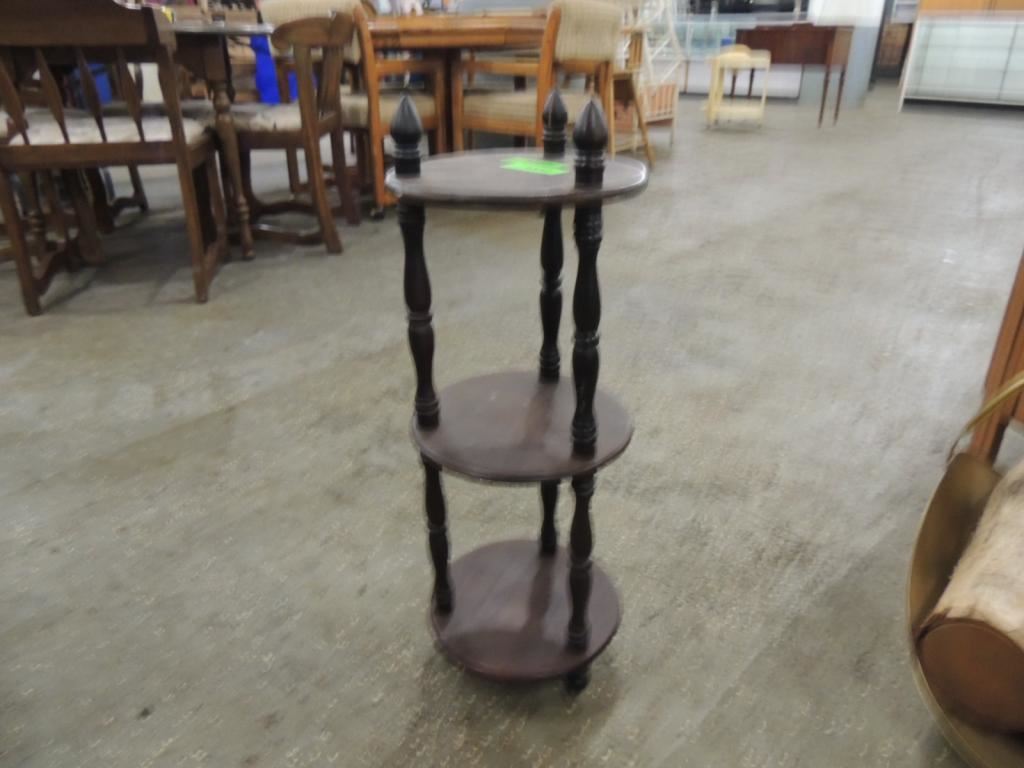SMALL ROUND 3 TIER PLANT STAND AS SHOWN SEE PHOTO FOR MORE DETAILS.