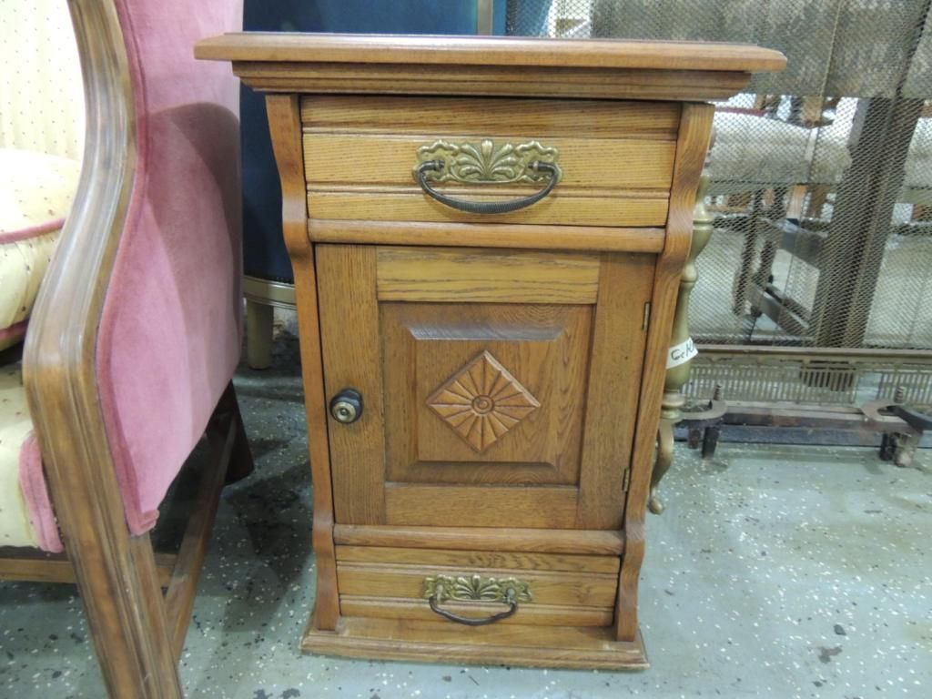 SMALL SIDE TABEL CABINET STORAGE DRAWER. WOODEN DETAILS. AS SHOWN SEE PHOTO FOR MORE DETAILS.