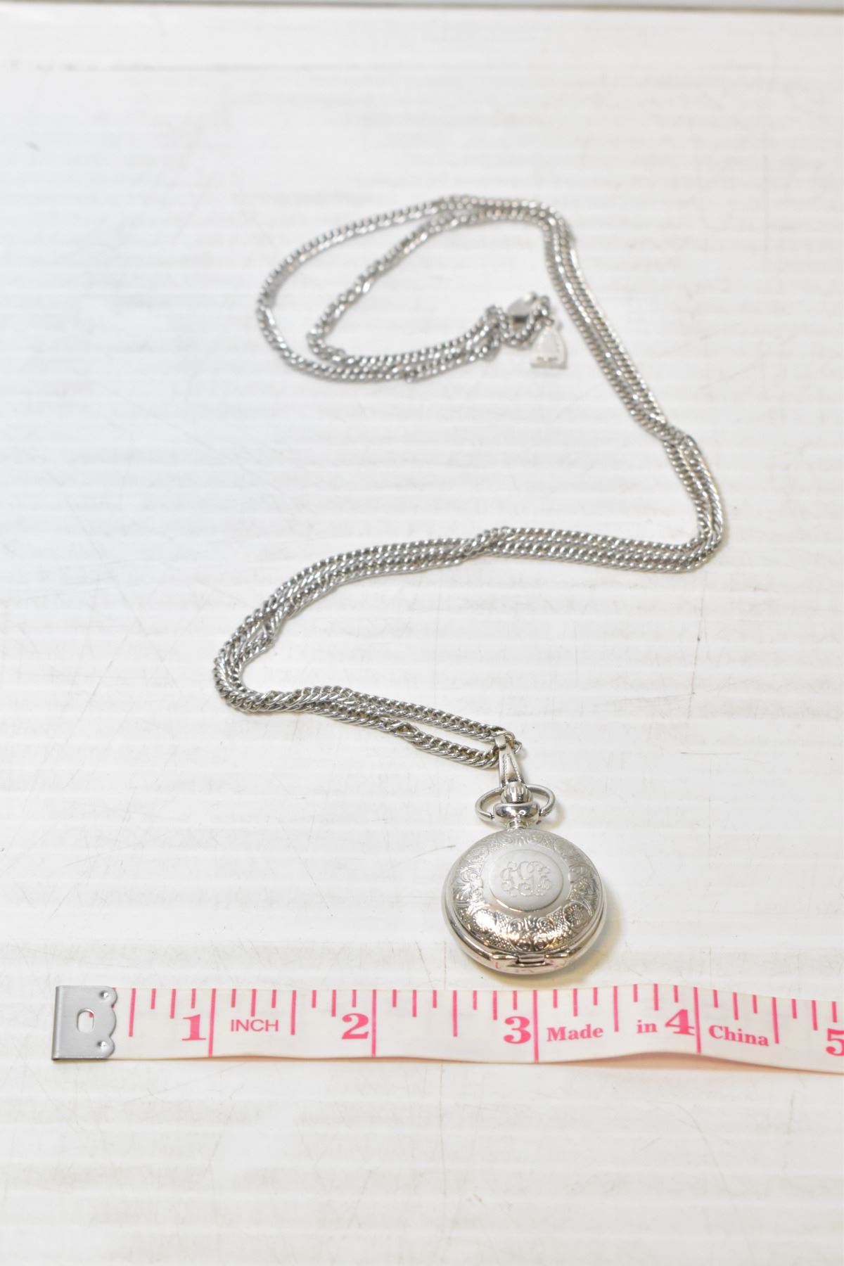 SMALL SILVERTONE POCKET WATCH ON CHAIN