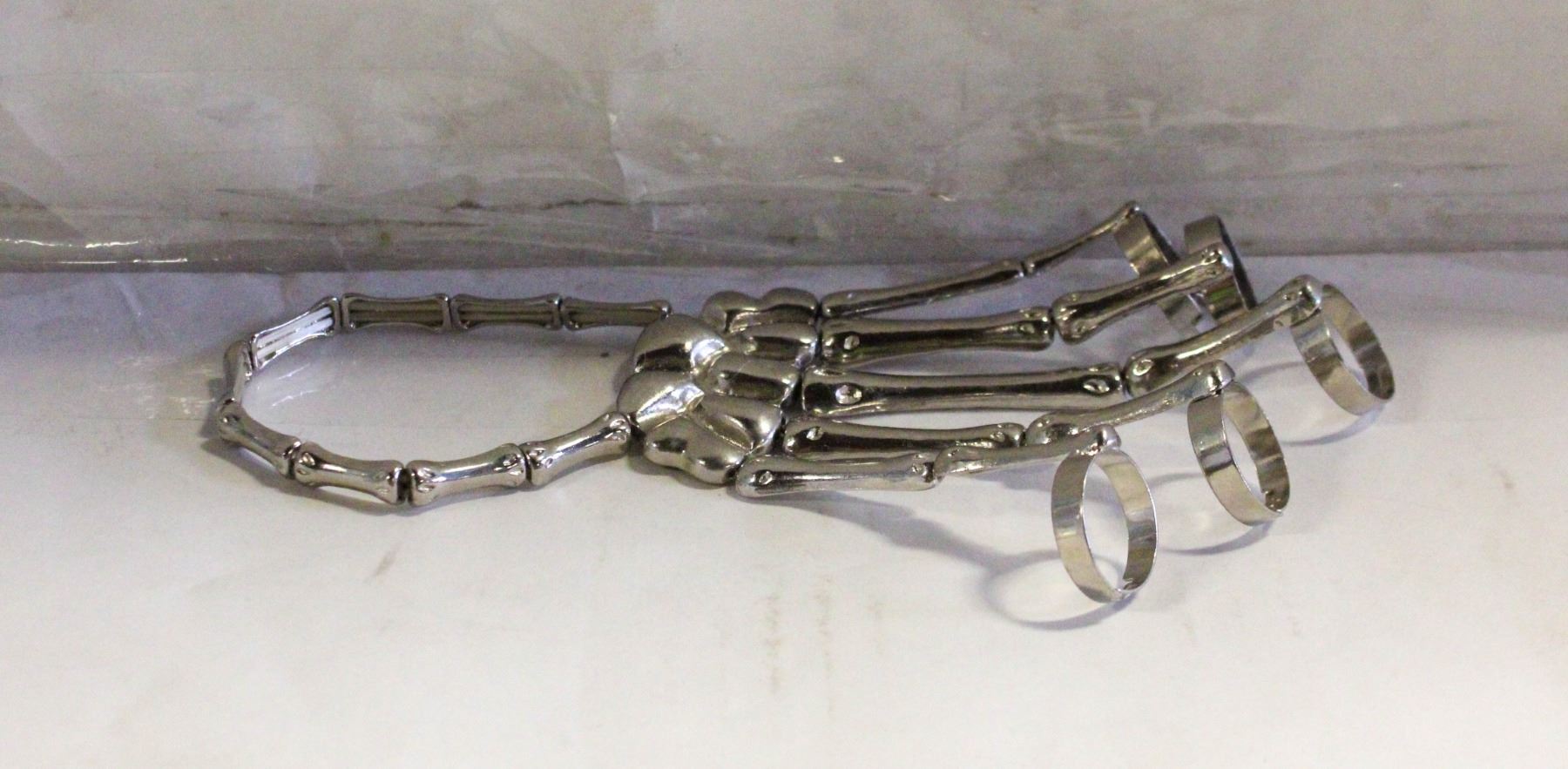 SMALL SKELETON HAND BRACELET AND RINGS