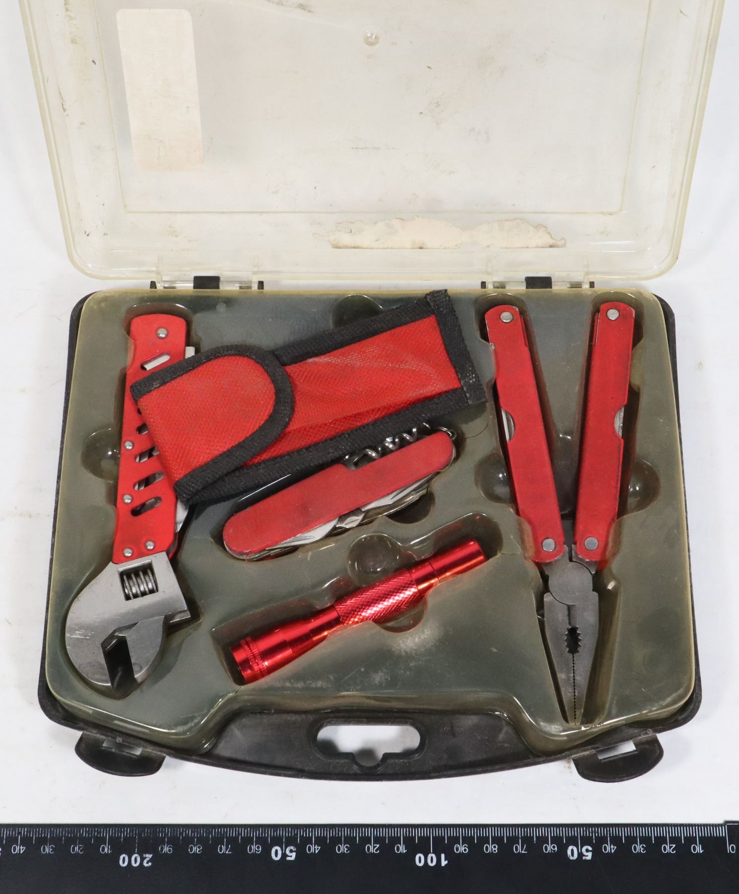 SMALL TOOL SET IN CASE, PLIERS, CRECENT WRENCH,