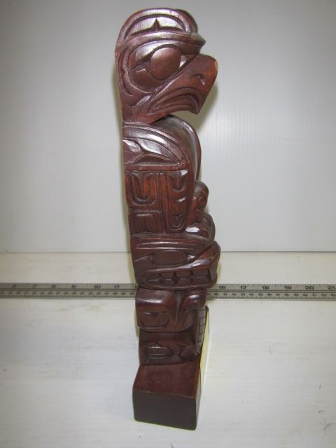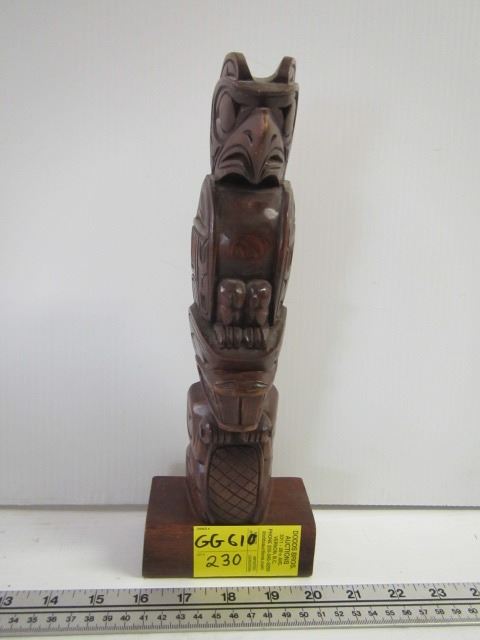 SMALL TOTEM POLE WITH BEAVER AND EAGLE