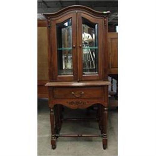 DONT MISS OUT ON THIS BEAUTIFUL PIECE! THE BACK OF THIS PIECE ON THE INSIDE HAS A BEAUTIFUL MIRROR TO REFLECT YOUR COLLECTIONS INSIDE. ONE GLASS SHLVING UNIT ACCENTS THIS PIECE WITH GLASS DOORS, EMAIL US FOR MORE INFORMATION AND/OR TO OBTAIN A SHIP QUOTE TO YOUR AREA.