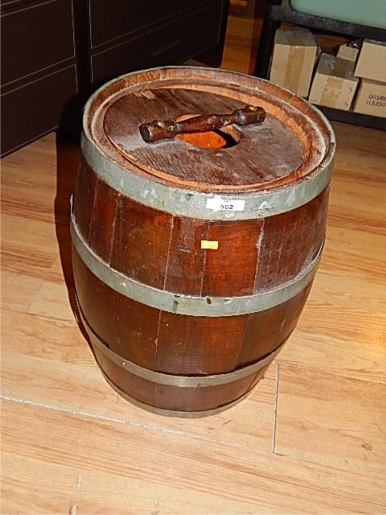 SMALL WOOD BARREL WITH LID