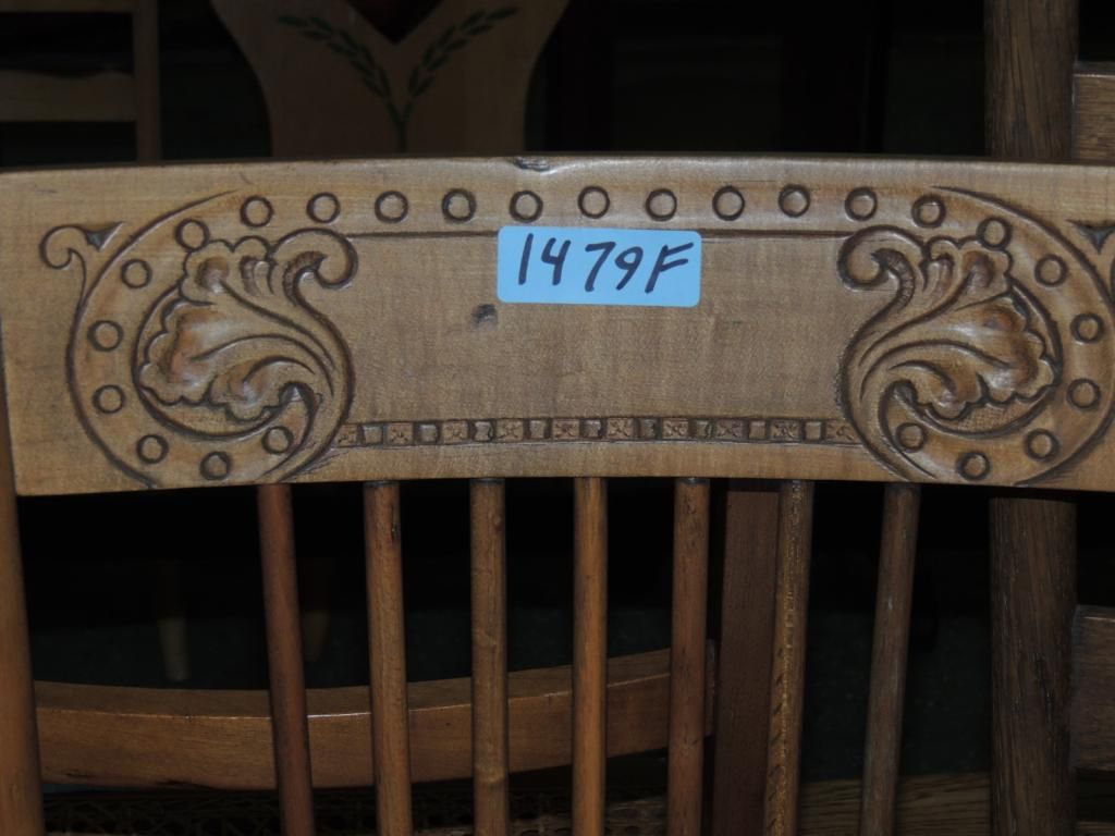 SMALL WOODEN CHAIR ETCHED DETAILS. AS SHOWN. SEE PHOTO FOR MORE DETAILS