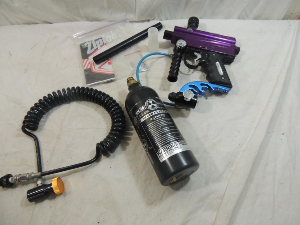 PAINTBALL GUN 20OZ CO2 CANISTER, GUN, HOSE, ACCESSORIES, PARTS, PAINTBALL GUN PART, AS SHOWN SEE PHOTO FOR MORE DETAILS.