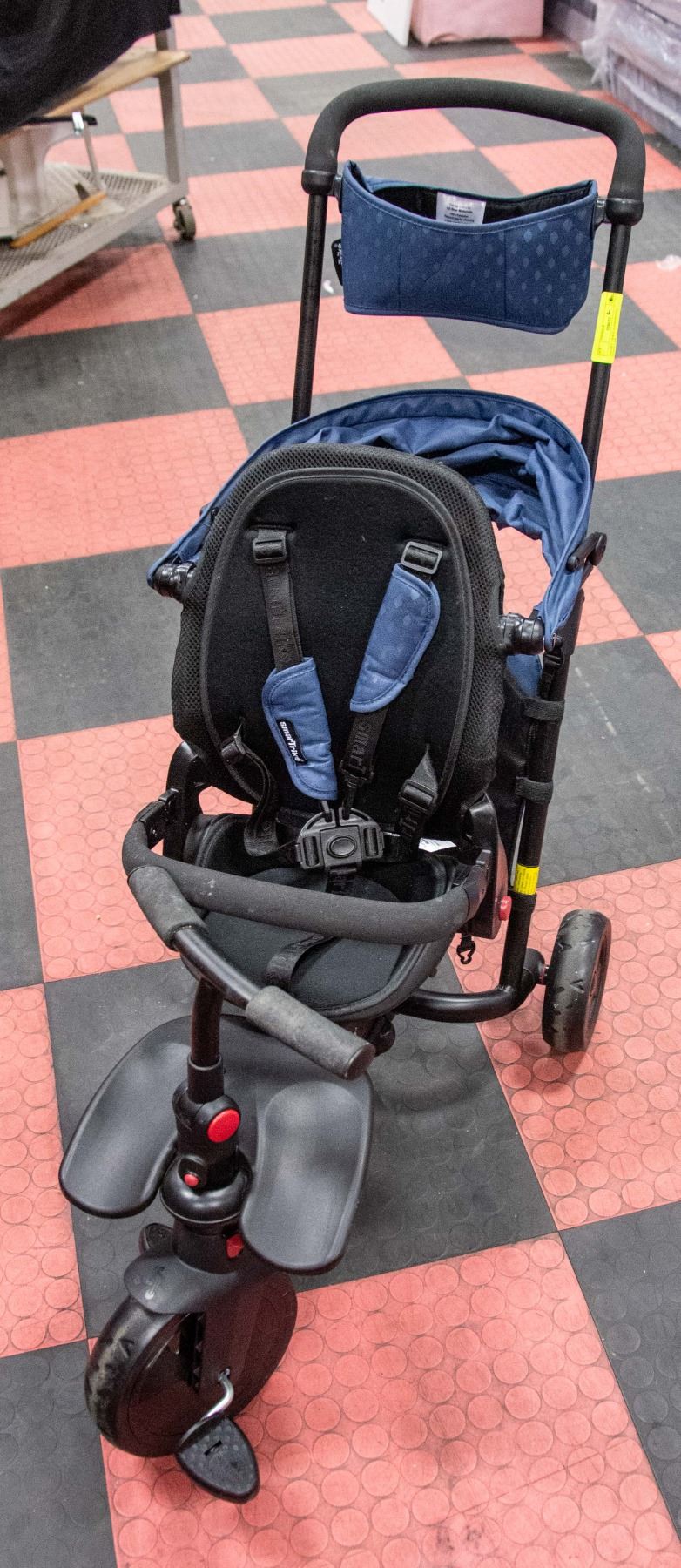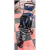 ERGONOMIC, ADJUSTABLE HANDLE, ZIP STORAGE AND TOP STORAGE, BELT AND HARNESS, FRONT WHEEL PEDAL