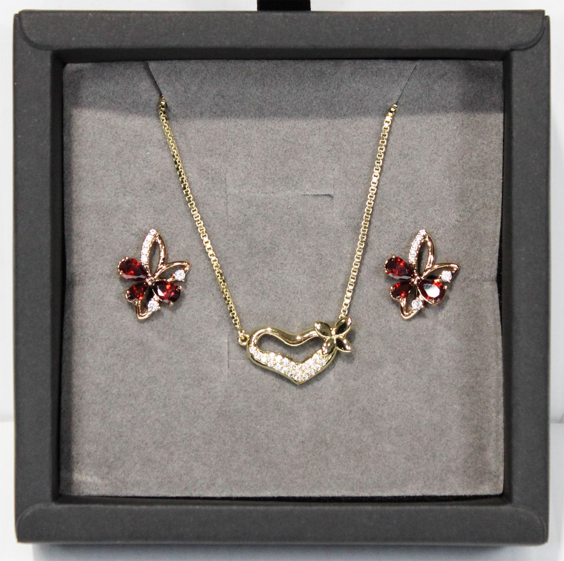 14K GOLD PLATED BUTTERFLY CZ 2 PCS SET INCLUDES LEVERBACK EARRINGS AND 6.5" - 7.5" BRACELET