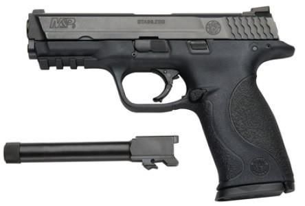 SM150922 PRODUCT DETAILS FAMILY:M&P Series MODEL:M&P9 Threaded Barrel Kit TYPE:Semi-Auto Pistol ACTION:Double Action Only FINISH:Black Melonite STOCK/FRAME:Polymer Frame STOCK/GRIPS:Black Polymer SPC FEATURE:Threaded Barrel Model CALIBER/GAUGE:9mm CAPACITY:17+1 BARREL:4.25" SIGHTS:White Dot Dovetail ADDL INFO:Extra Threaded Barrel ADDL INFO:3 Interchangable Backstraps