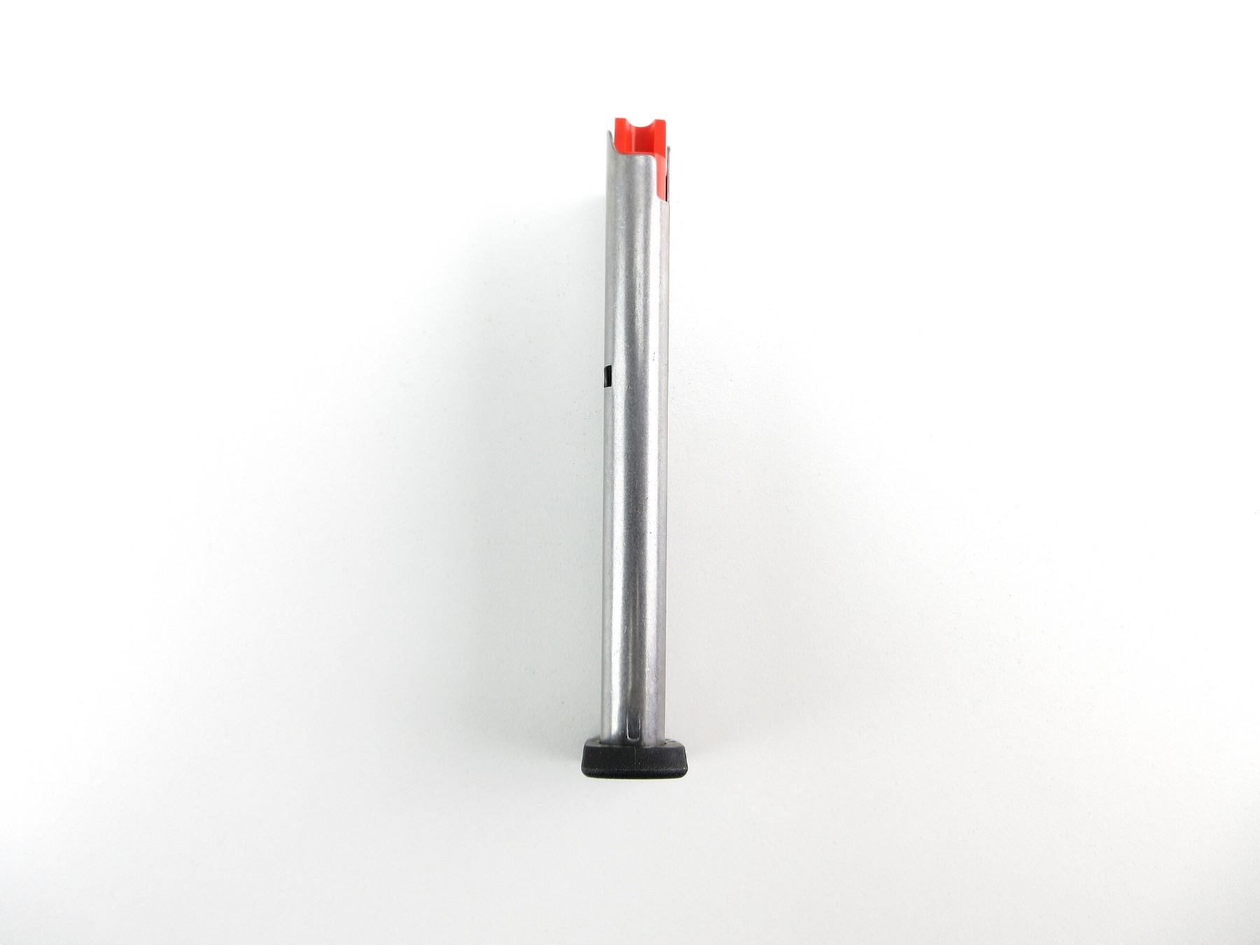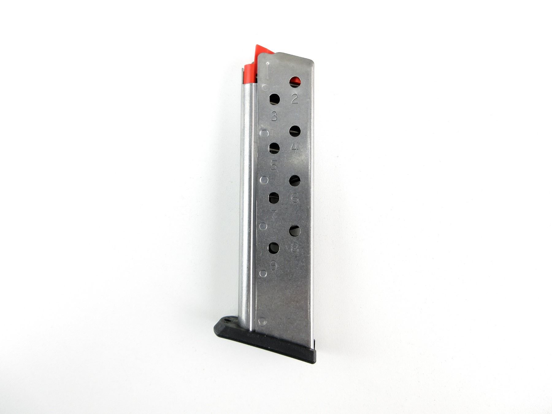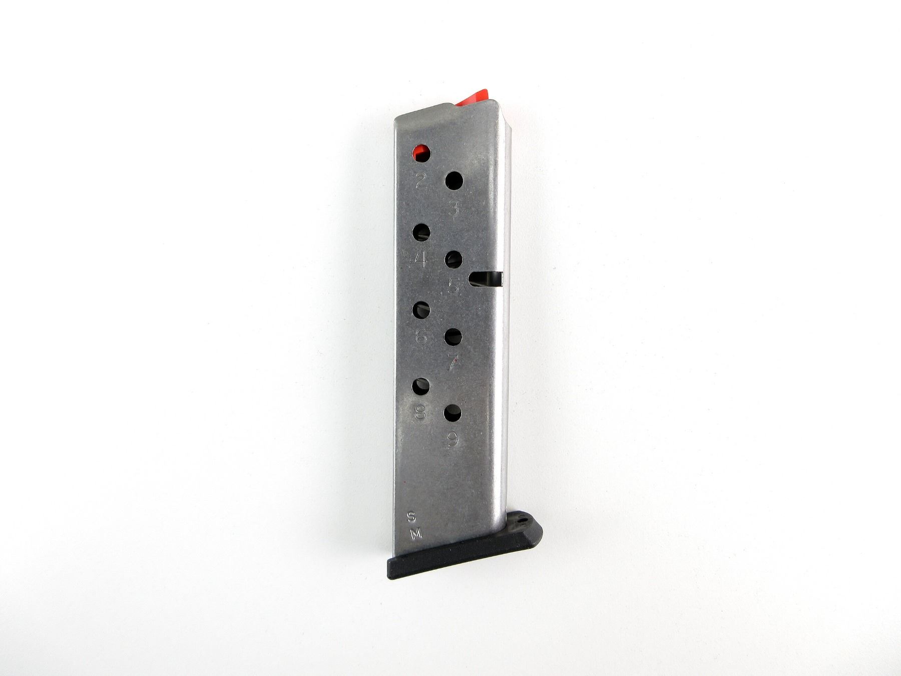 (1) 9MM 3906 MAG, 9 RNDS, STAINLESS STEEL CONSTRUCTION, RED POLYMER FOLLOWER, MARKED: "S M", ETC., BLACK POLYMER BASE. SEE PHOTOS. PAL REQUIRED.