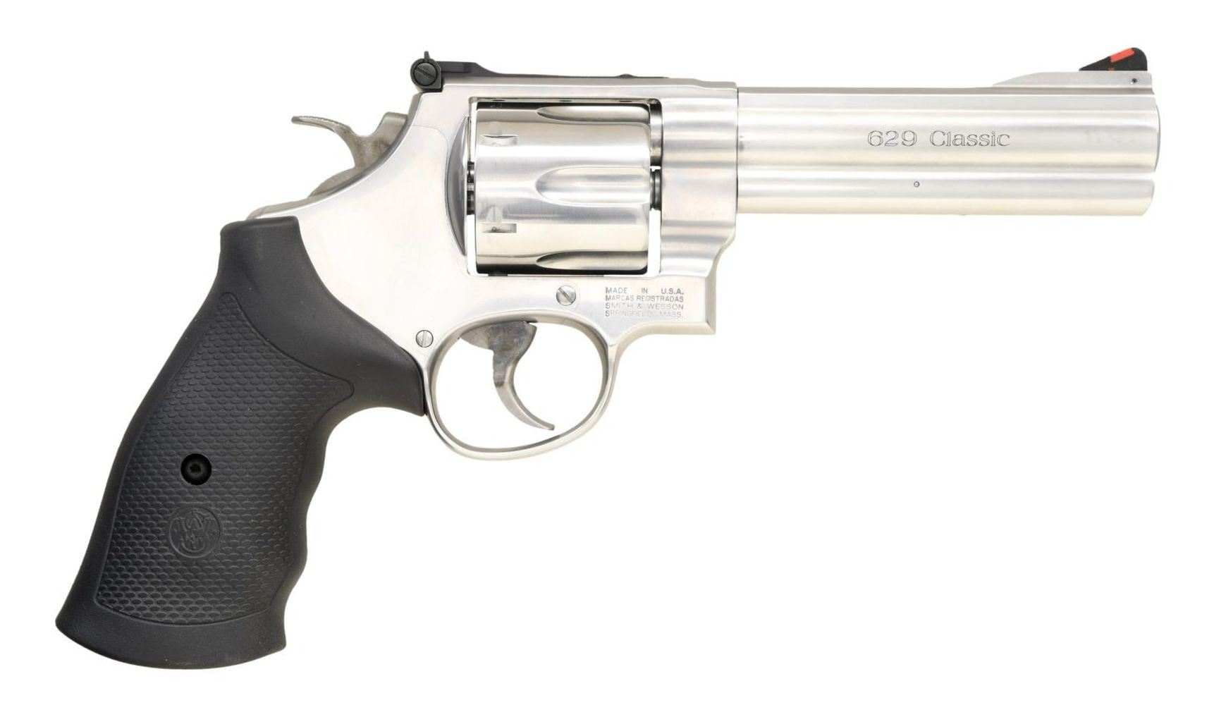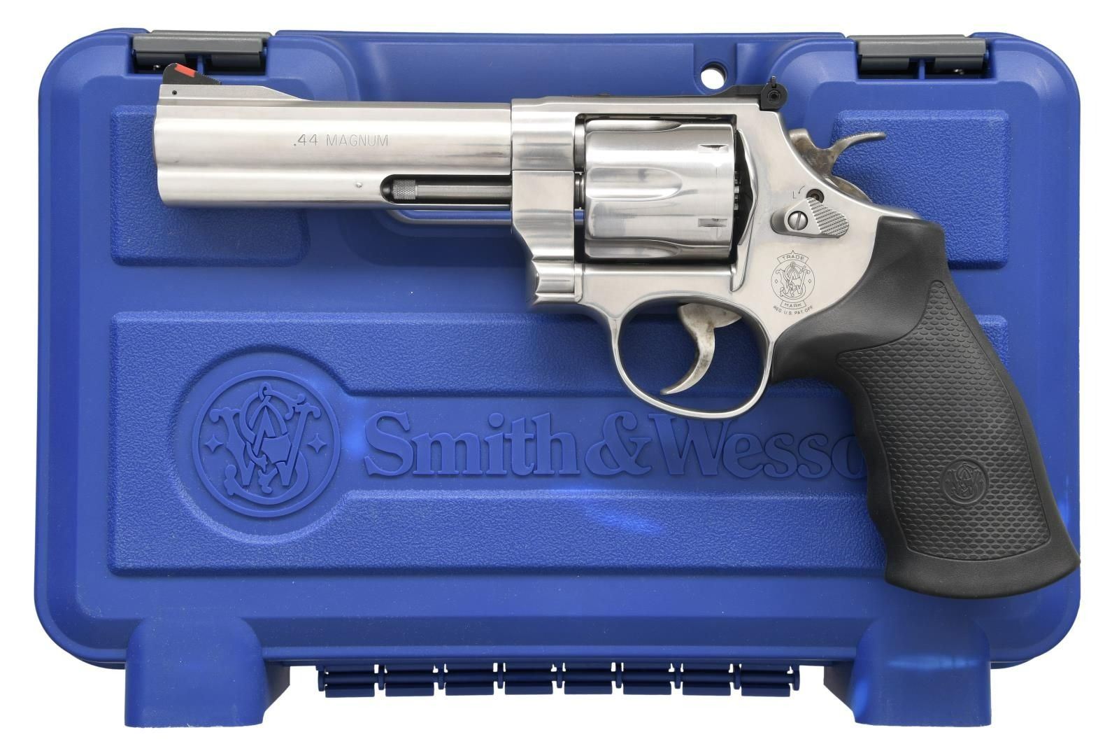 Cal. 44 Mag. S# DPN1808. Bbl. 5" w/ full underlug. Ramped serrated front sight w/ orange insert. Adjustable rear sight. Stainless finish. Rubber finger groove grips w factory logo. UNATTACHED ACCESSORIES: w/box. CONDITION: all aspects very good plus or better w/ some light handling & operational wear. PROVENANCE: The Collection of Gun Sport Ltd owned by Jon R. Thomas. (23-3971/MJC). MODERN. $500-800.