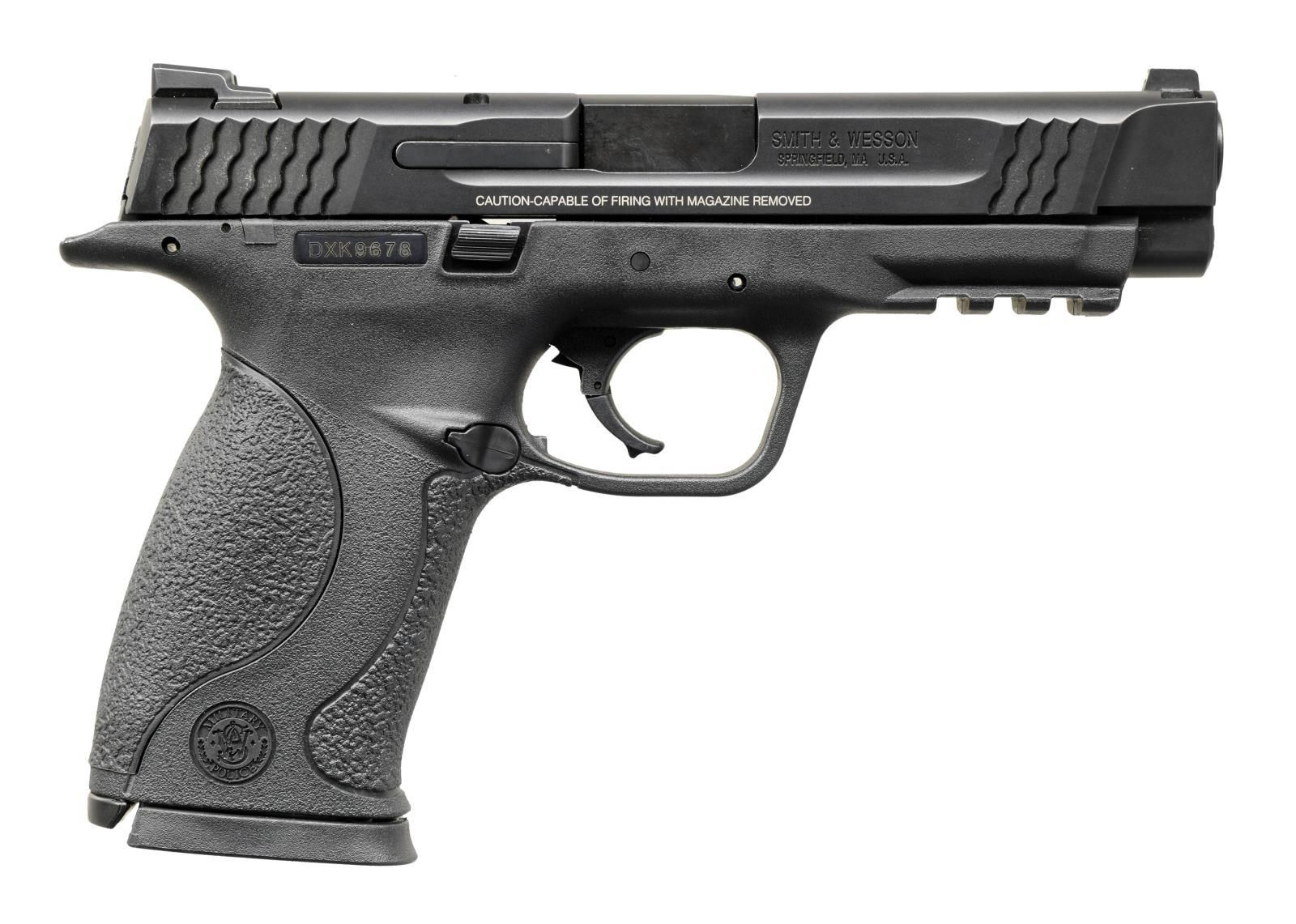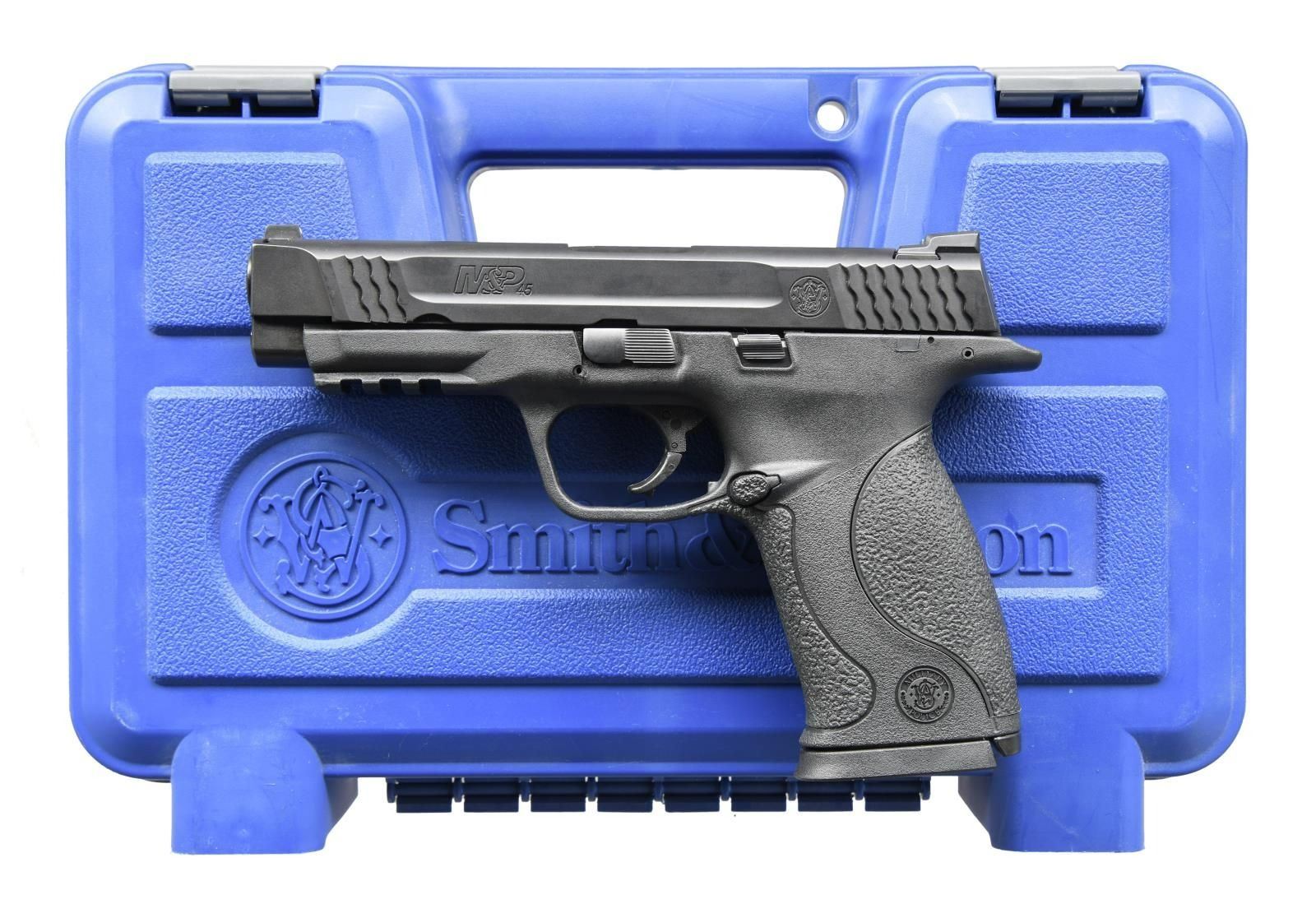 BARREL. Cal. 45 ACP. S# DXK9678. Bbl. 4.5". A full size pistol w/ a 10+1 magazine capacity. Lightweight polymer frame. Ambidextrous slide release. Matte black finish. Slide serrated front & rear. White, 3-dot sights w/ drift windage adjustable rear sight. Short picatinny rail below barrel for accessory mounting. Replaceable backstrap portions for custom fit. MAGS: 2 factory 10 rd. UNATTACHED ACCESSORIES: Factory box, spare threaded barrel w/ protector, lock & paperwork. CONDITION: All aspects indicate very little use. Finish complete & consistent. Bright bores w/ strong rifling. PROVENANCE: The Collection of Gun Sport Ltd owned by Jon R. Thomas. (23-4013/JZ). MODERN. $400-600.