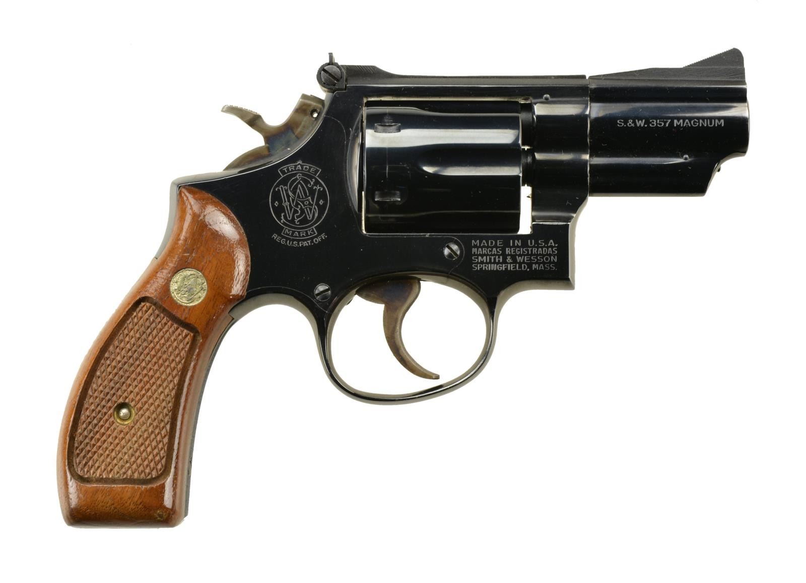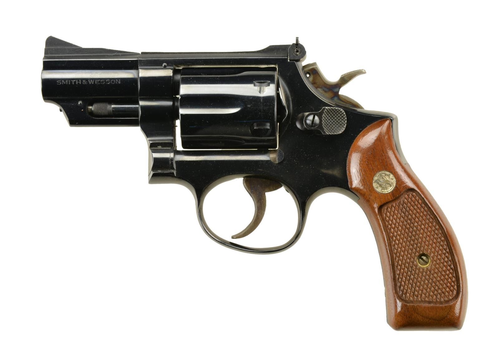Cal. 357 Magnum. S# 6K30268. Bbl. 2.5". Blued Model 19-3 traditional double action revolver. Serrated top bbl. strap. Black ramp front sight w/ adj. rear. 6 Shot fluted cyl. Serrated front & backstrap. Checkered hammer spur & cyl. release. Hardwood checkered grips w/ S&W medallions. CONDITION: blued finish is complete & consistent displaying very little sign of use. Extremely thin drag line on cyl. Grips illustrate very gentle wear, primarily at butt. Bright bore w/ well pronounced rifling. Timing appears fine in both single & double action. (22-3203/JZ). MODERN. $500-700.