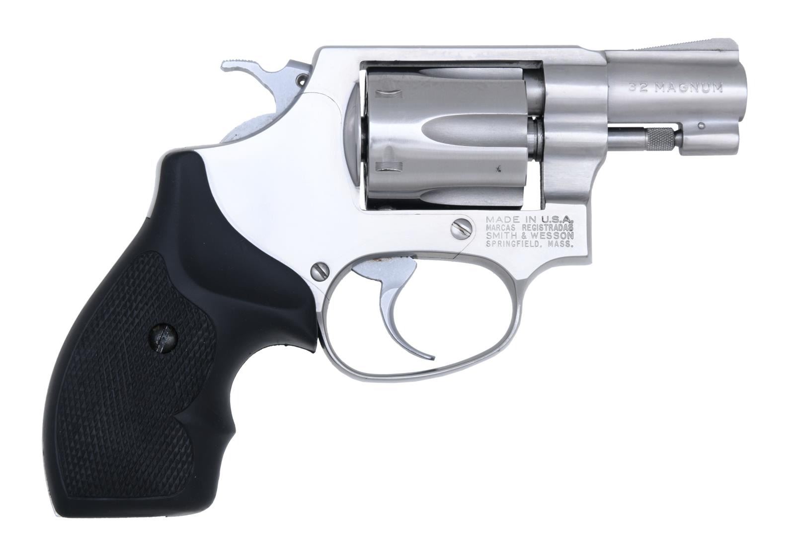 Cal. 32 H&R Mag. S# BEY5634. Bbl. 2". Ramped serrated blade front sight. Fixed rear sight. Stainless finish. Unmarked black checkered grips. CONDITION: metal & grips show a few scattered handling marks. Very good plus bright bore. (24-1730/MJC). MODERN. $1000-1500.