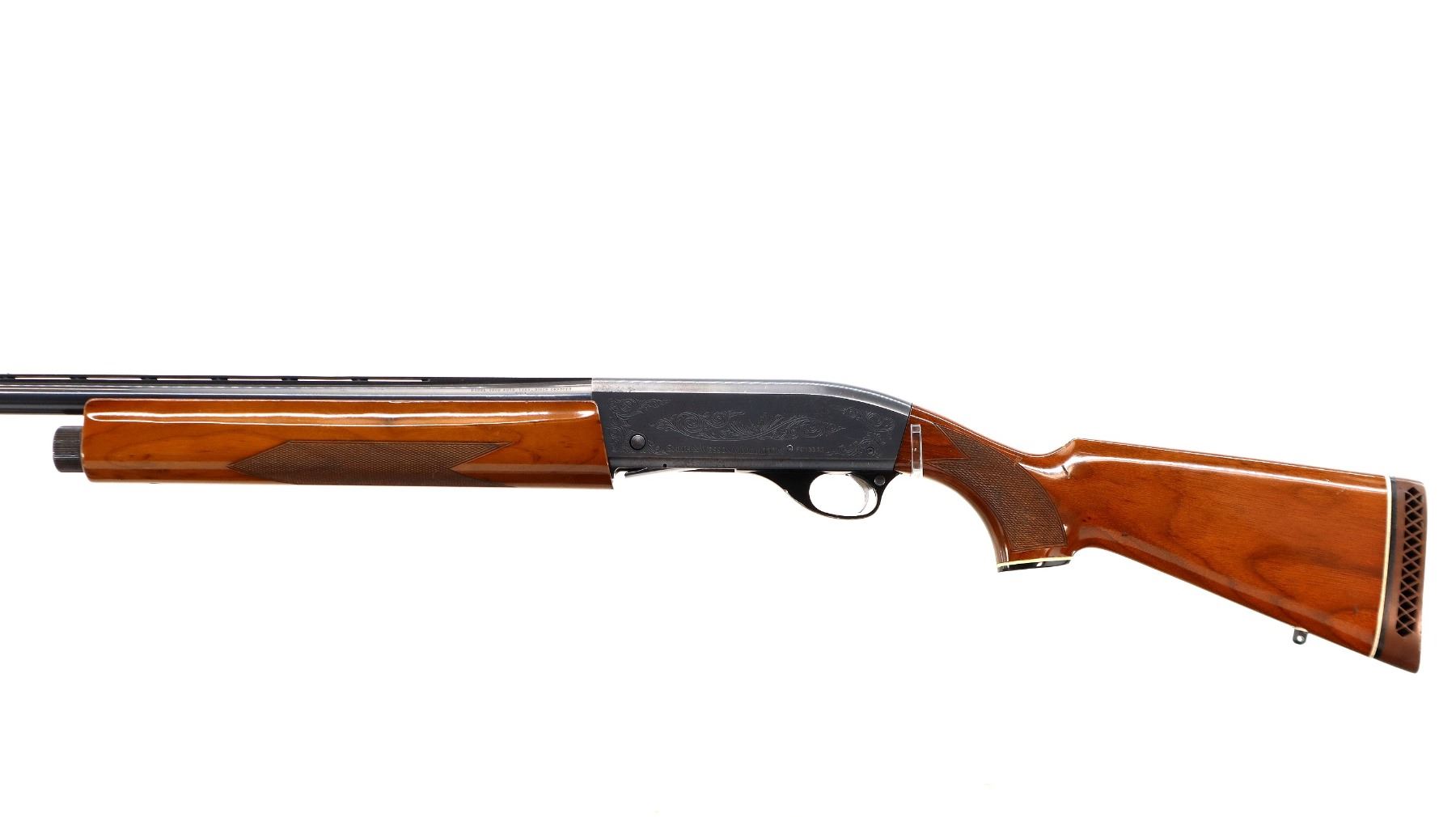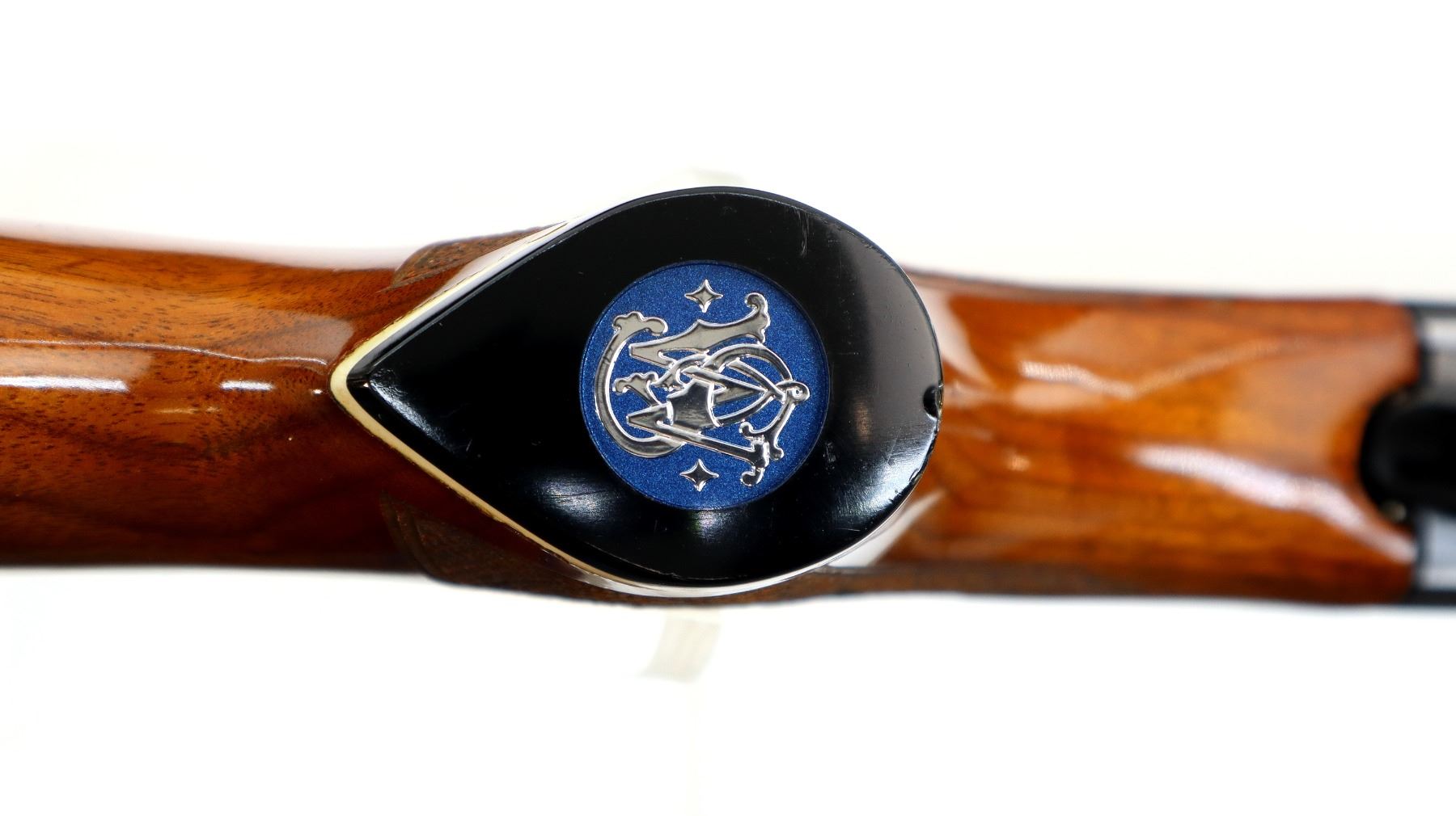 Main Description: Silver front and mid rib beads, blued finish, vent rib, engraved receiver. Two piece wood stocks, checkered forearm and pistol grip, brown vented rubber recoil pad, 14.25" LOP, grip cap, rear swivel stud, front missing hole is present.
