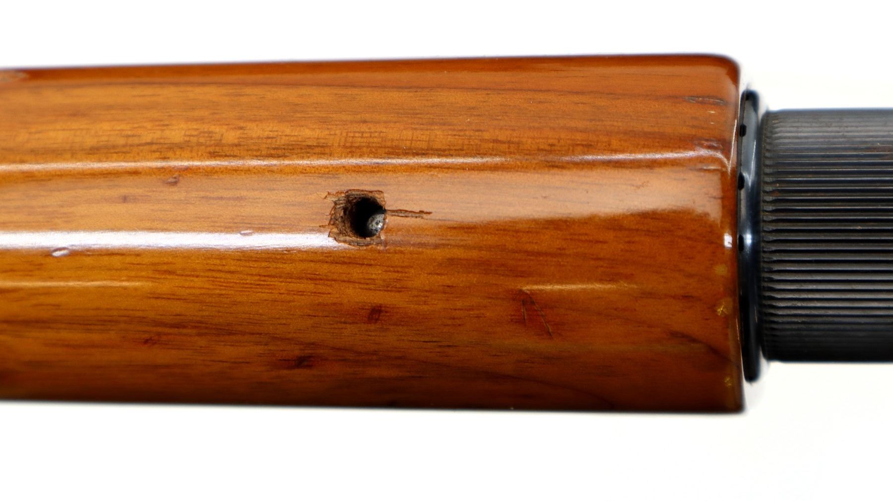 Wear: Metal finish shows some light rust speckles, scratches, handling marks and wear. Stocks show some marks, scratches and wear.