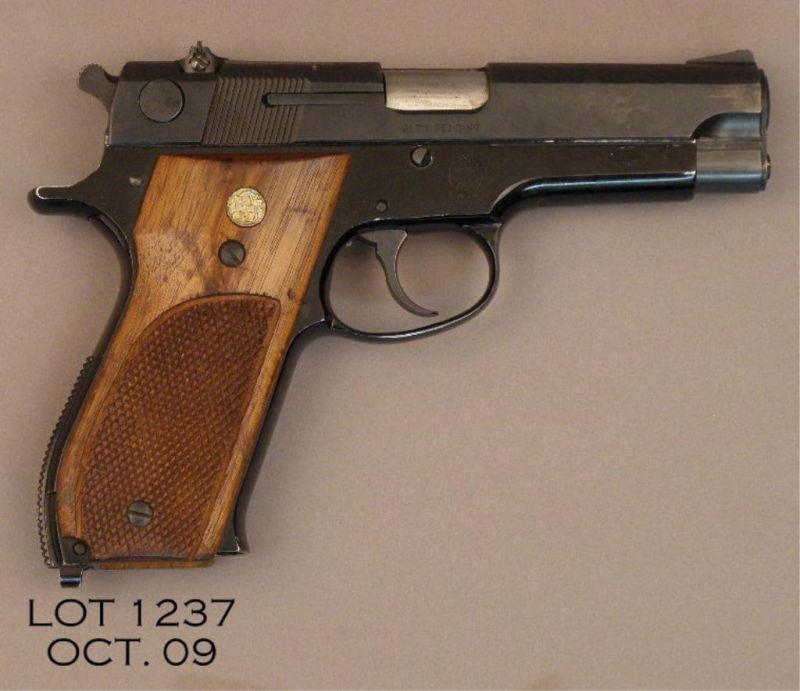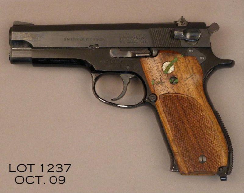 SMITH & WESSON Model 39-2, # A151036, 9mm, 4" barrel, windage adjustable sights, checkered medalli