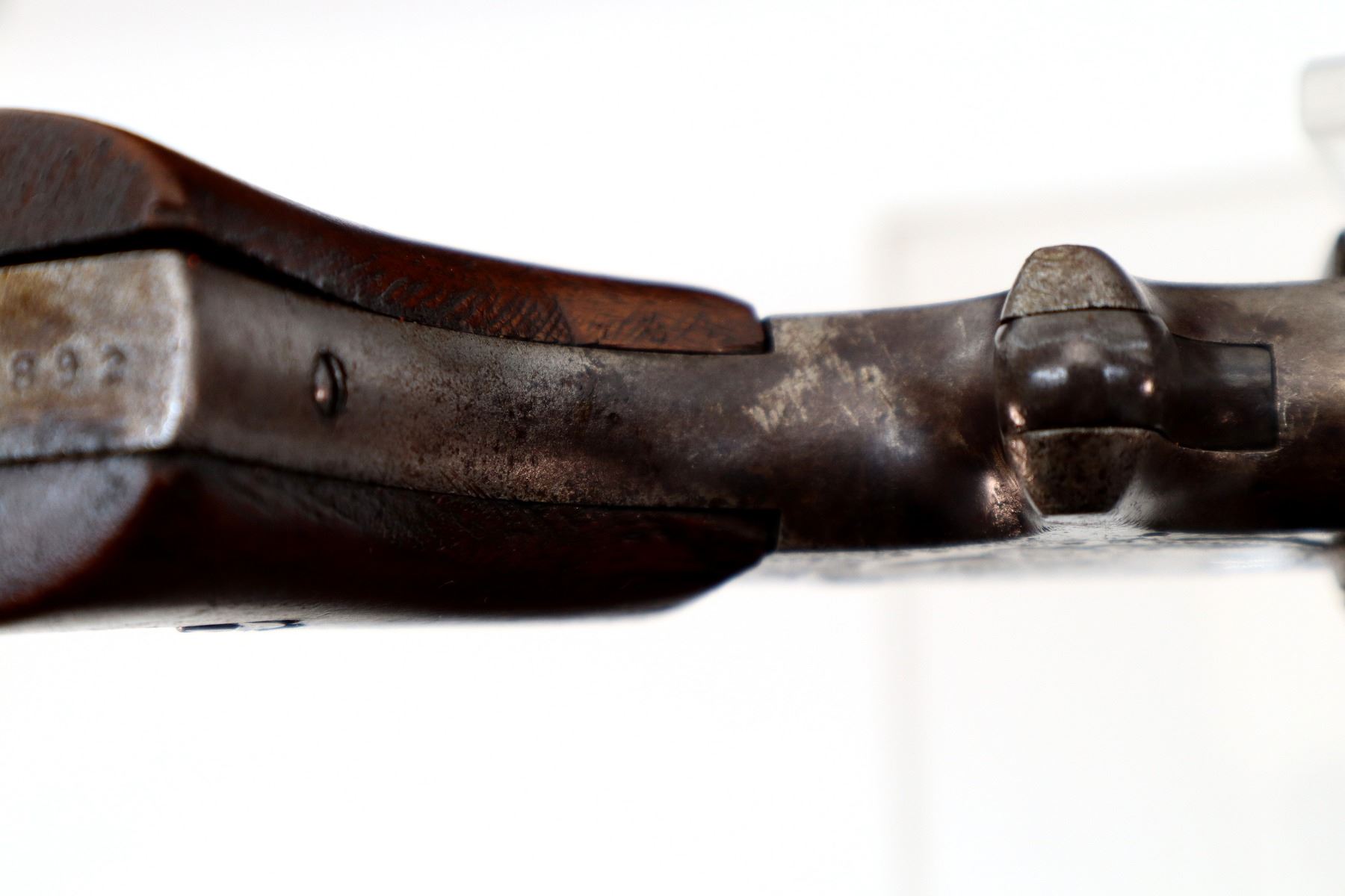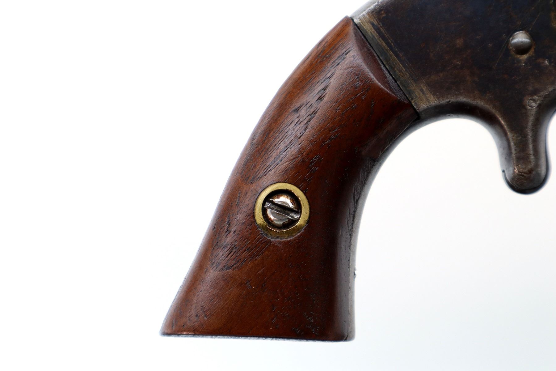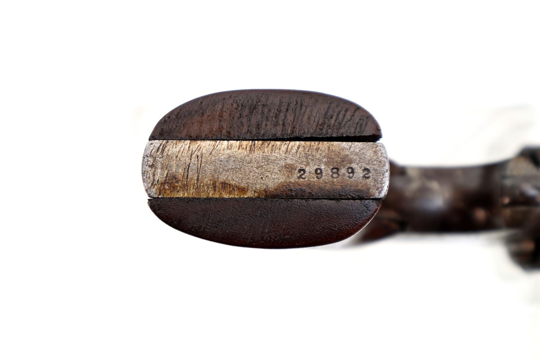 Wear: Metal finish turning brown with pitting, light rust, scratches, handling marks and wear. Grips show marks, scratches and wear.