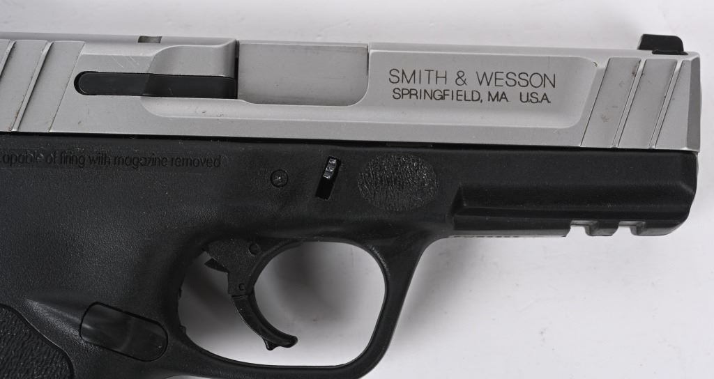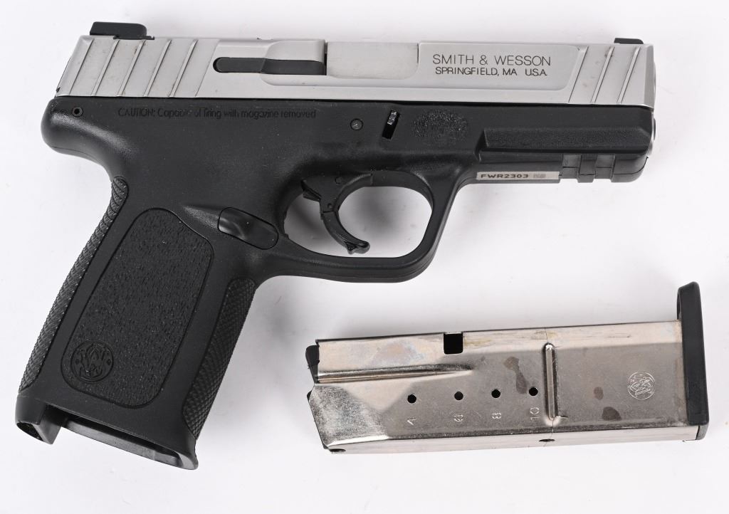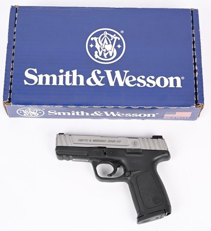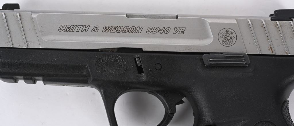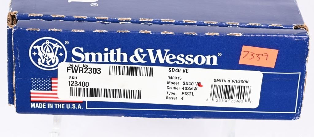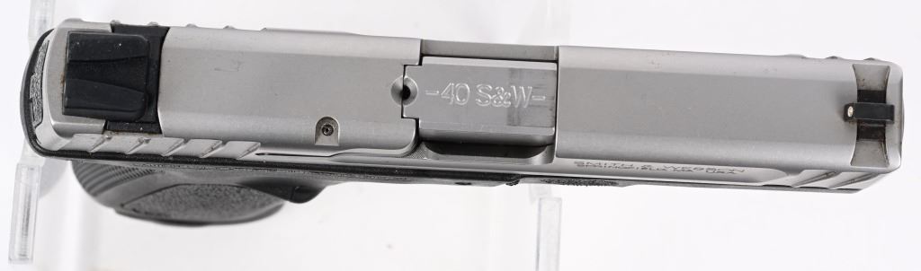 SERIAL NUMBER: FWR2303. BARREL: 4". CALIBER: .40 S&W. MANUFACTURED: 2000'S. Standard markings and features. Factory 3-dot sights. Stainless finished slide and black polymer frame with flash light rail on the bottom. Includes factory 10 round metal magazine, manual and serial matching box. CONDITION: Metal is very good overall, with a few scratches and some blemishes. Frame is excellent. Bore is shiny and crisp. Fine mechanics. Magazine is excellent, as is the box. MODERN