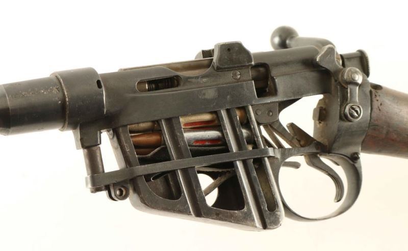 Demilled military rifle turned into a skeleton action with cut-away viewing slots in the receiver, barrel, bolt/bolt head and magazine with dummy rounds. Used for instructional purposes & by Armourers as a tool for testing suspect components. ***NON Firearm*** From The John F Sukey Collection