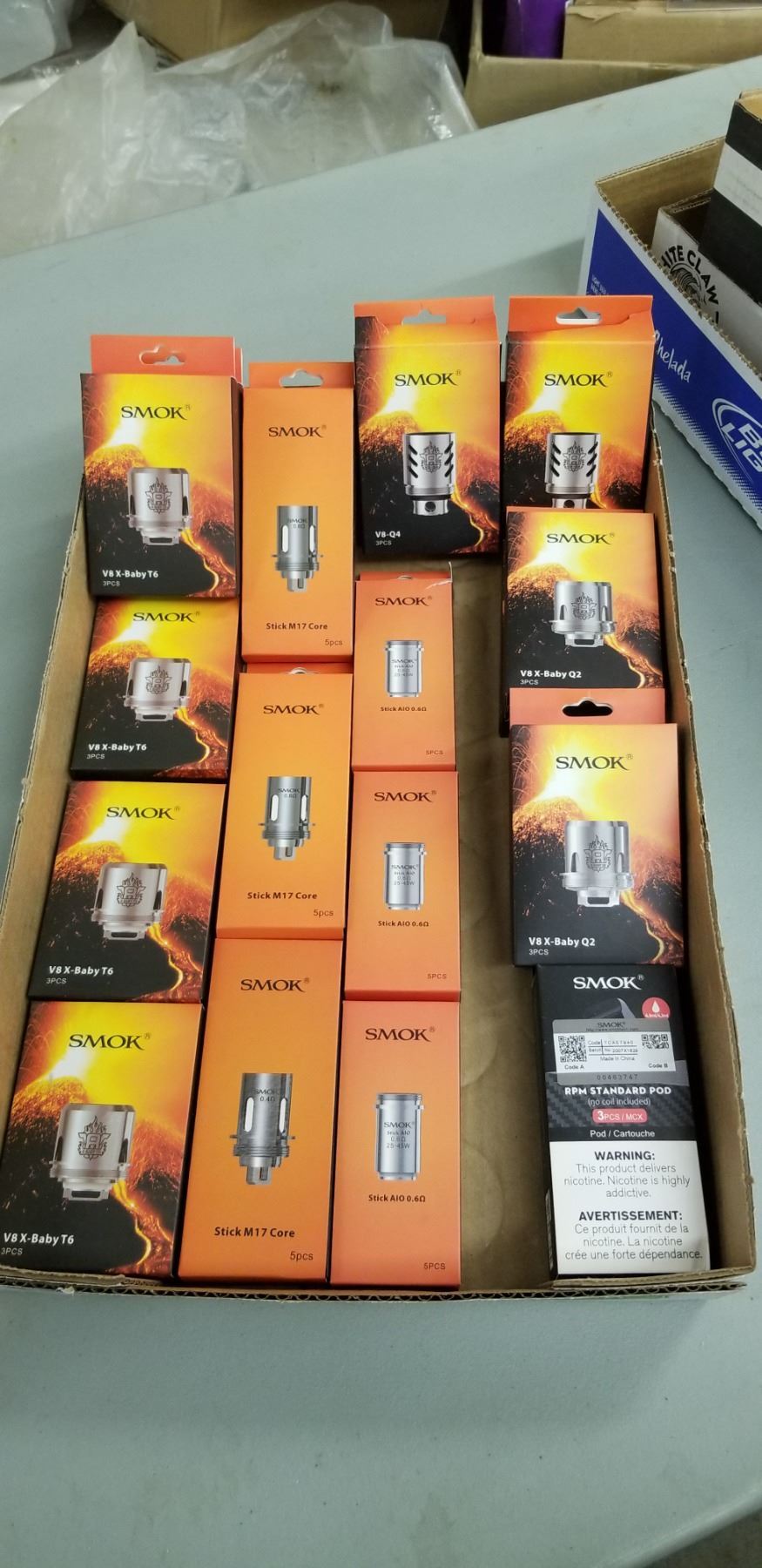 SMOK ASSORTED VAPE COILS & RPM STANDARD COIL, V8 X-BABY T6 QTY 5, V8 X-BABY Q2 QTY 3, V8-BABY Q4 QTY 2, STICK M17 CORE QTY 3, STICK A10 0.6 QTY 3