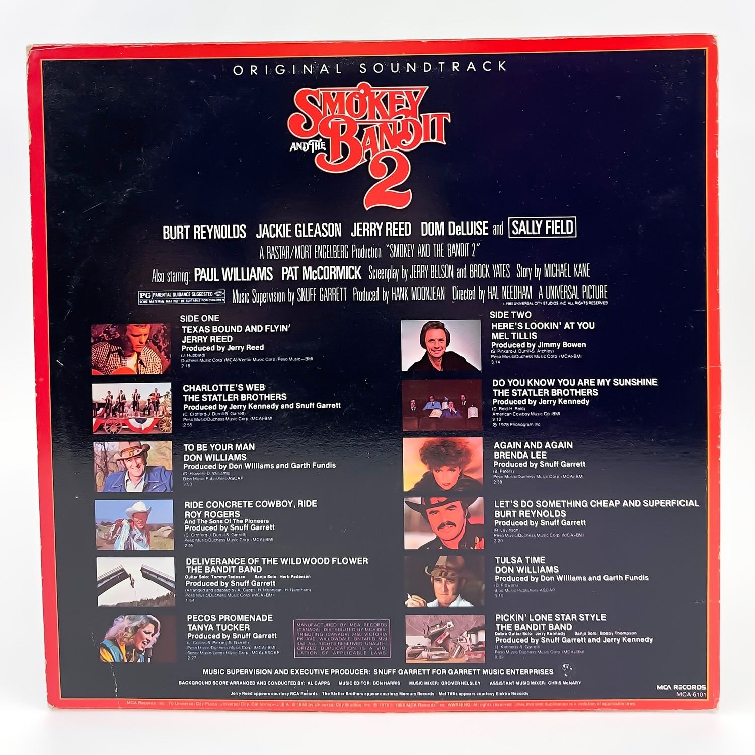#8377 - VINYL LP RECORD ALBUM. SMOKEY AND THE BANDIT 2 - MUSIC FROM THE ORIGINAL MOTION PICTURE SOUNDTRACK. BURT REYNOLDS, SALLY FIELD, JERRY REED, DOM DELUISE & JACKIE GLEASON. ROCK, WORLD & COUNTRY, STAGE & SCREEN SOUNDTRACK, COUNTRY, FOLK. MCA RECORDS MCA-6101