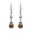DANGLE EARRINGS WITH LEVERBACK CLOSURE. 2 ROUND CUT FACETED DIAMONDS, .01 CTW. 4.50 CTW SMOKEY QUARTZ. 2 SZ 9X6MM WITH GIFT BOX