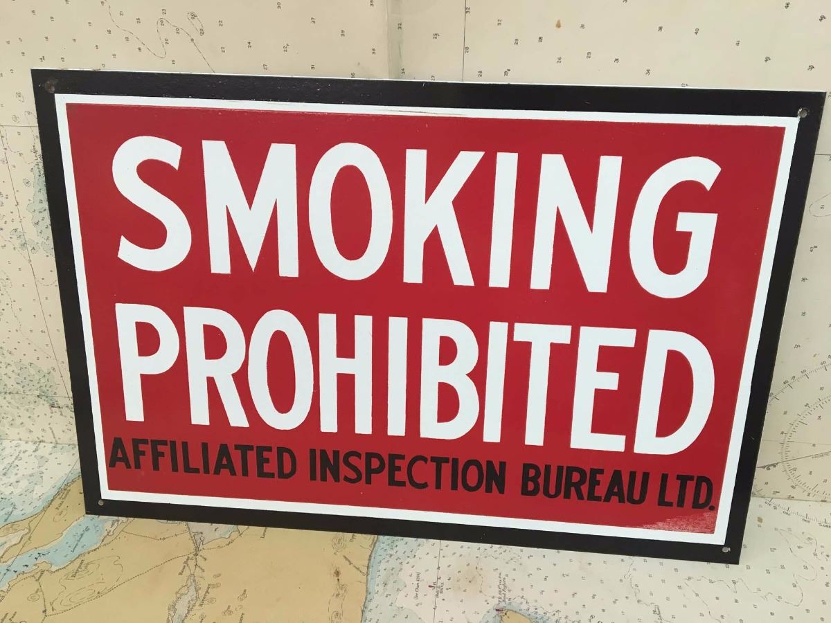 “SMOKING PROHIBITED” Enamel Sign, 15”x10”, NOS For Wooden Grain Elevator, 1950s Affiliated Inspection Bureau