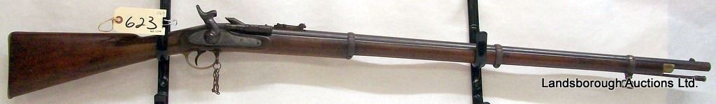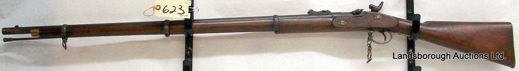 ANTIQUE, SINGLE SHOT, 57 SNIDER, 36" BARREL, SN NONE. WOOD HAS SCRATCHES AND DNETS, BLUING IS BROWN, BORE HAS PITTING, RIFLING PROMINENT.
