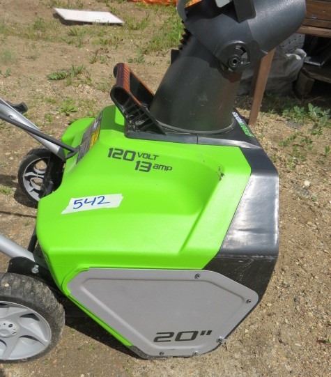 SNOW BLOWER (120 VOLT) *13 AMP* (GREEN WORKS) *20" SHOVEL* (WORKING)