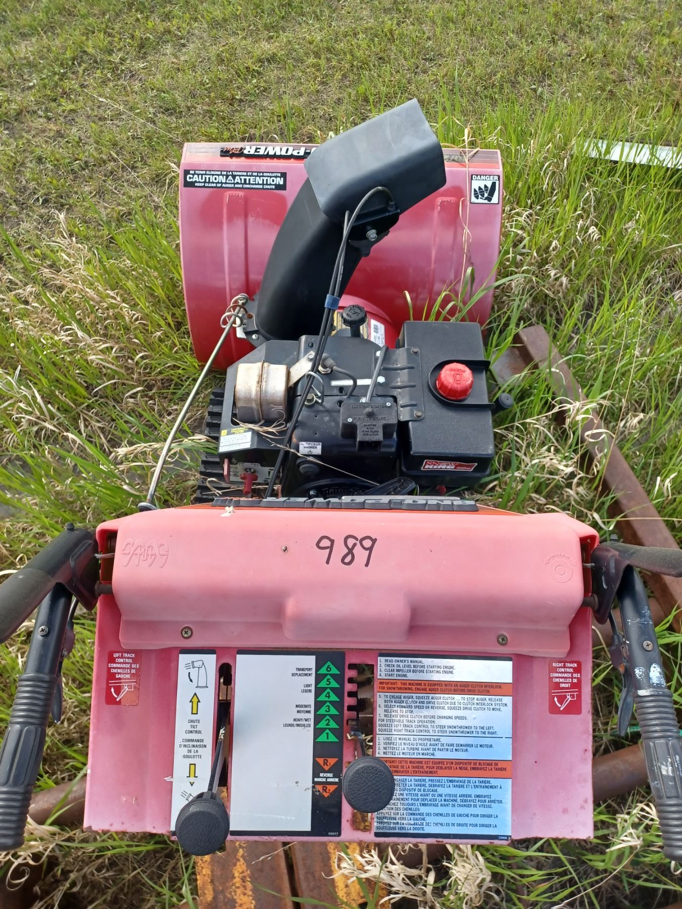 SNOW BLOWER, GAS POWERED, TURNS OVER 28: ON RUBBER TRACKS\