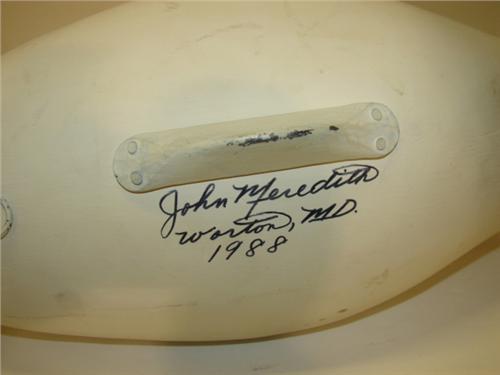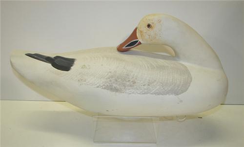 SNOW GOOSE SLEEPER DECOY. Carved by John Meredith, Worton, MD 1988. 18”L