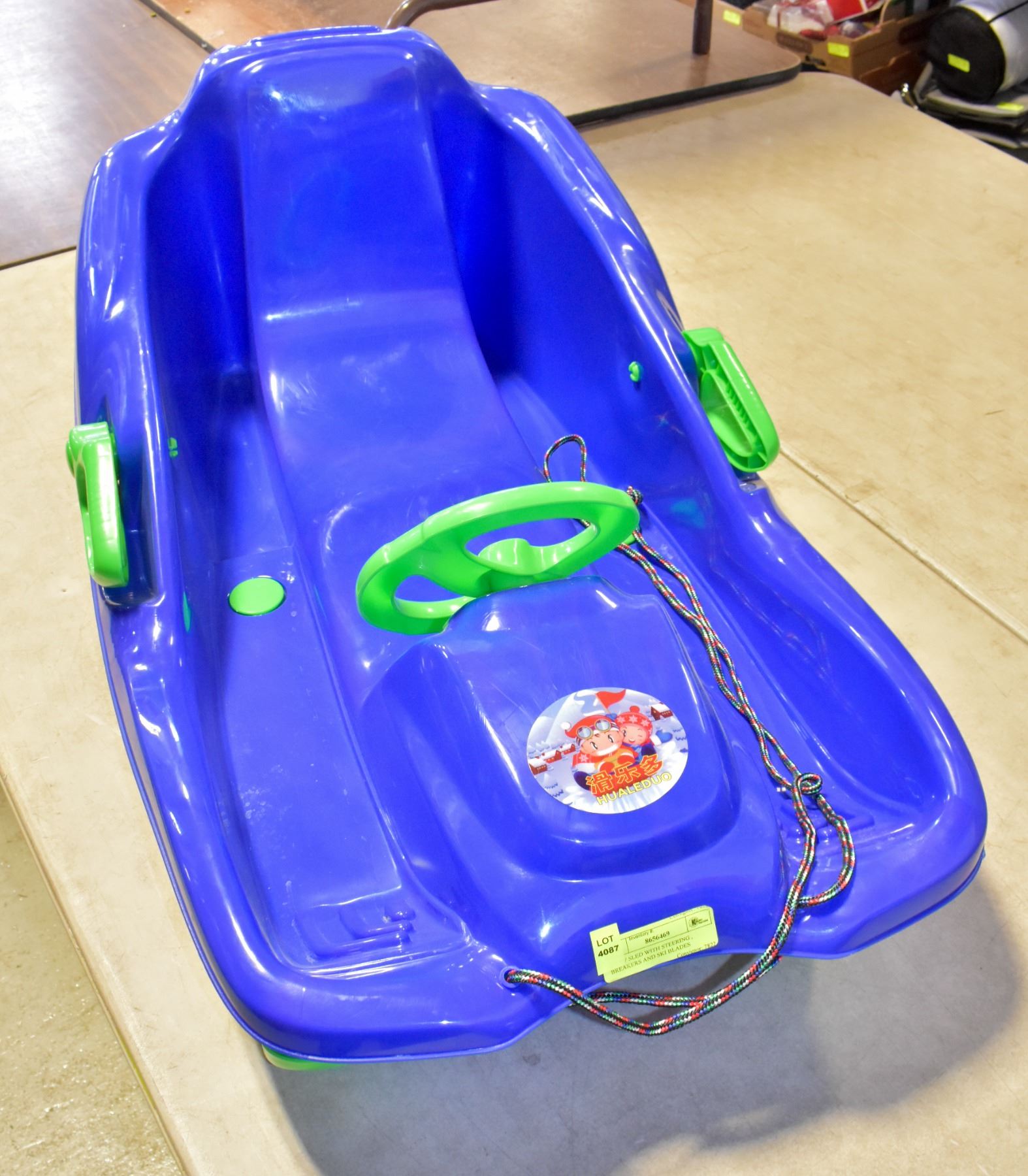 (NEW)) SNOW SLED WITH STEERING , BREAKERS AND SKI BLADES , TOBOGGAN , SLED , DURABLE LIGHT PLASTIC