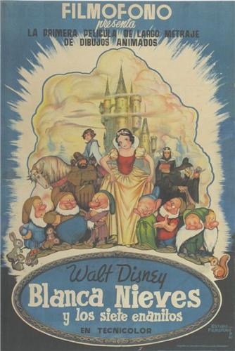 BLANCANIEVES Y LOS SIETE ENANITOS. (Modelo A). SNOW WHITE AND THE SEVEN DWARFS. 1937. 100x70cm. (40x27in.). Litografía. B. Diversas restauraciones en zonas perifericas y en los pliegues. Entelado.