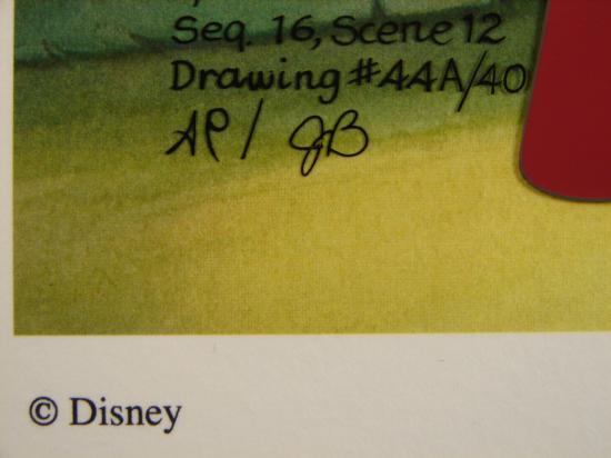"Disney artists have taken 45 original animation drawings used in the production of the film and recreated each on cel only four times...While it is not an original production background, the original layout and frames from the film were used as reference...The original painting is archived at the Walt Disney Animation Research Library."